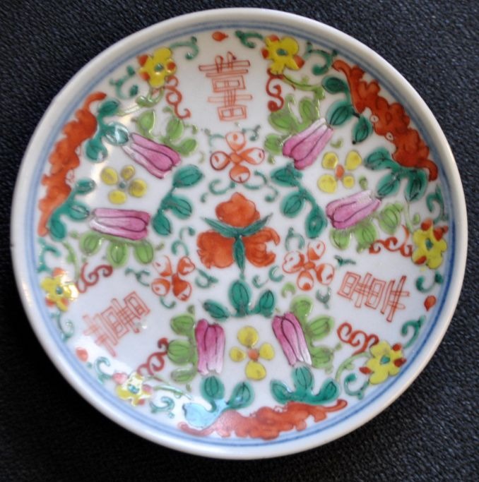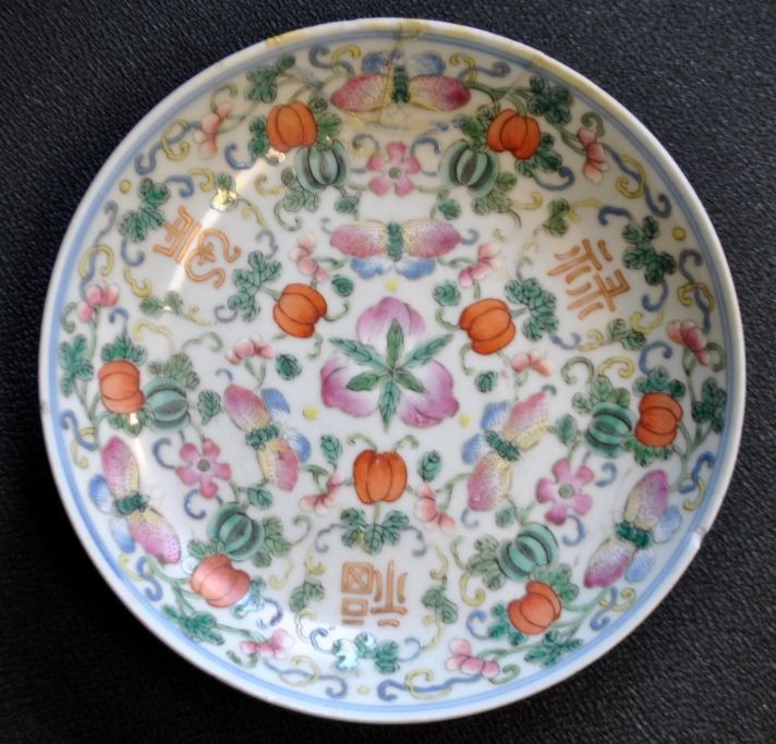 Chinesischer Porzellanteller, polychron dekoriert, 19. Jahrhundert