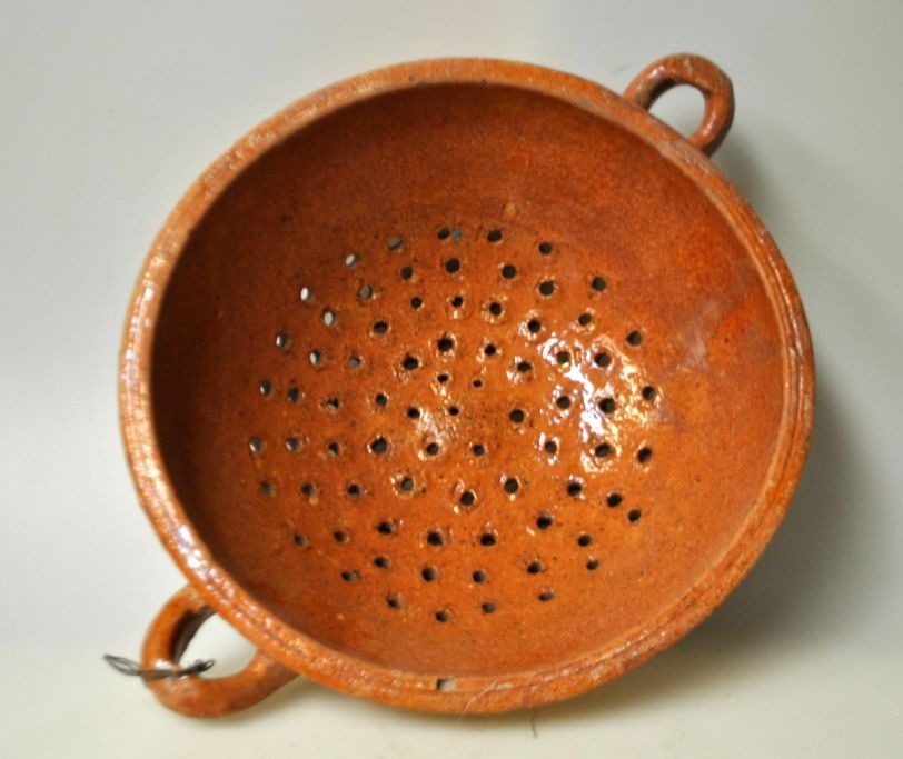 Sieb aus glasierter Keramik, 19. Jahrhundert. Dänemark.