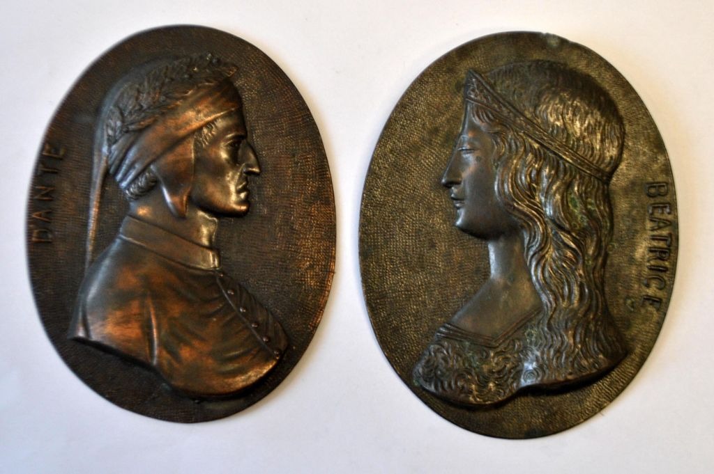 Ein Paar ovaler Reliefs von Dante und Beatrice, Italien des 19. Jahrhunderts.