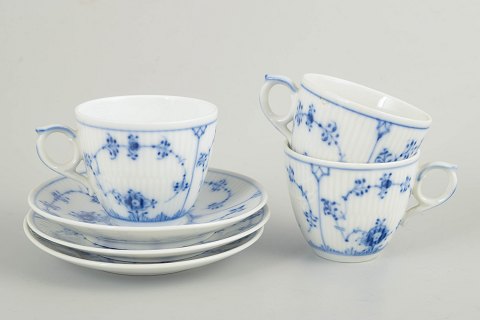 Royal Copenhagen, Blue Fluted Plain coffee cups with matching saucers, set of 3.