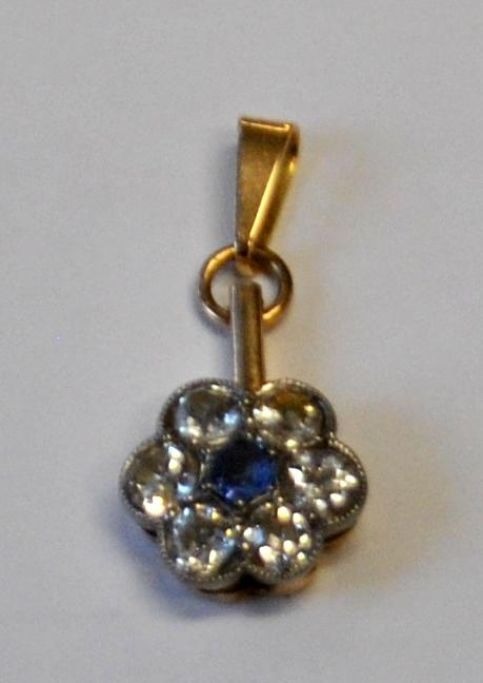 Anhänger aus 14-karätigem Gold mit 6 alten Diamanten und einem Saphir, 20. Jahrhundert.