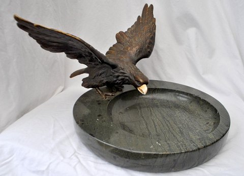 Großer französischer Bronzeadler auf einer Marmor schale, Jugendstil, um 1900.