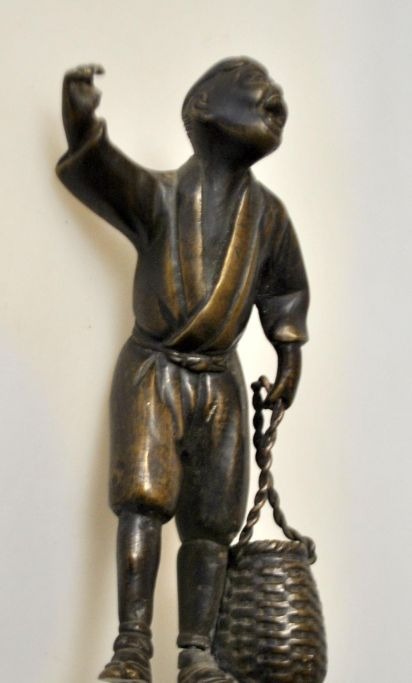 Chinesische Bronzefigur eines Jungen mit einem Topf, 19. Jahrhundert.