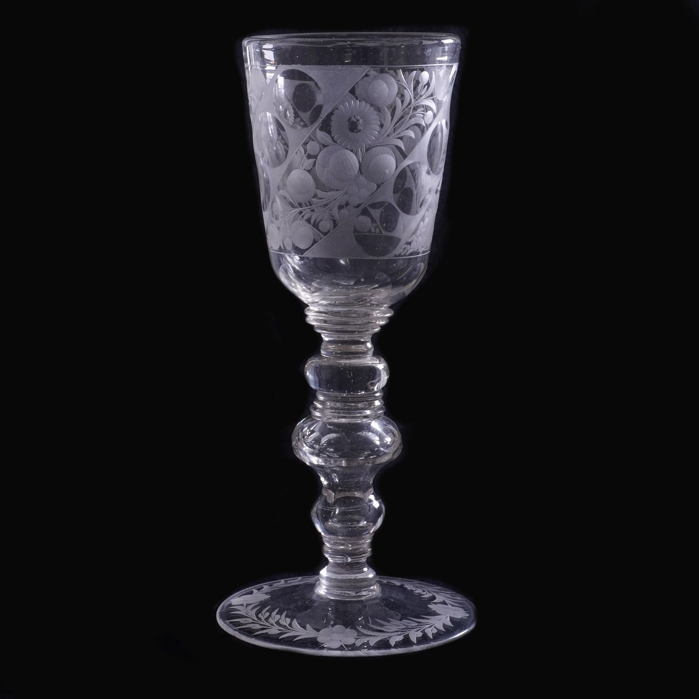 Deutscher Glaspokal mit stilisierten Blumen Böhmen um 1700 H: 24cm Bestellnummer: glas 6