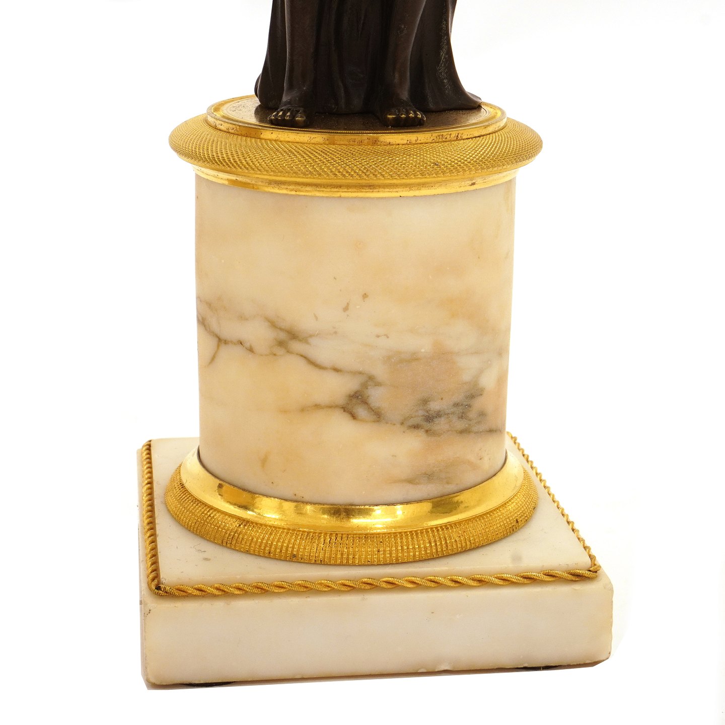 Ein Paar grosse feuervergoldete Bronzekandelaber mit Marmormontierung. Frankreich um 1810. H: 73cm