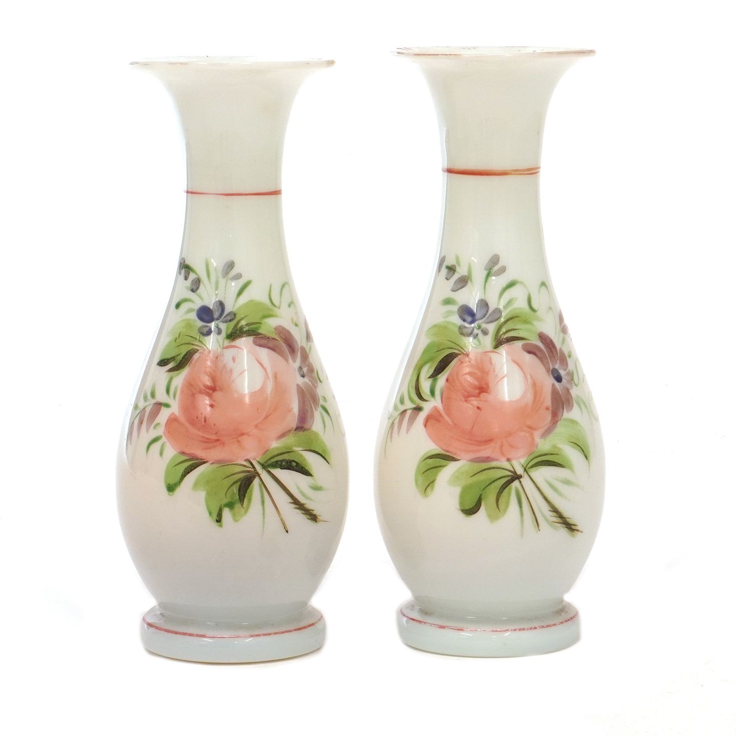 Pair of enamel decorated vases circa 1880. H: 18cm