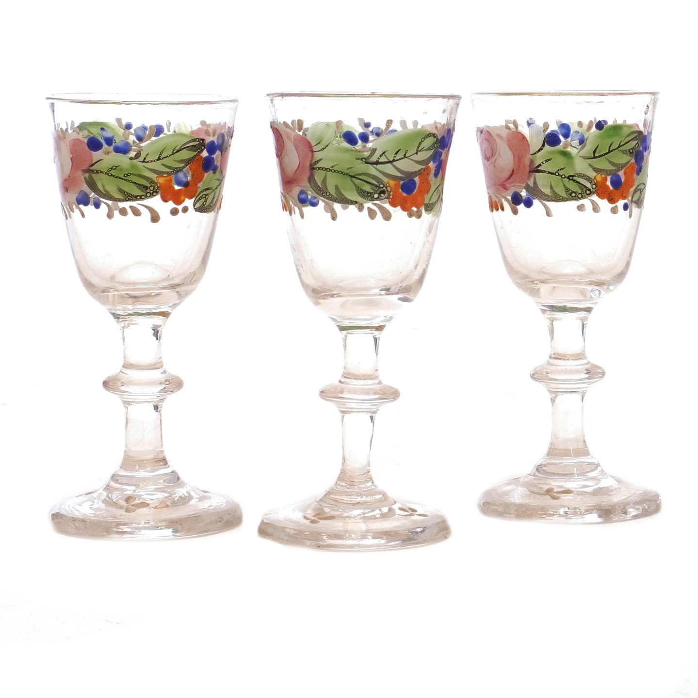 Satz von drei emailledekorierten Gläsern um 1860-80