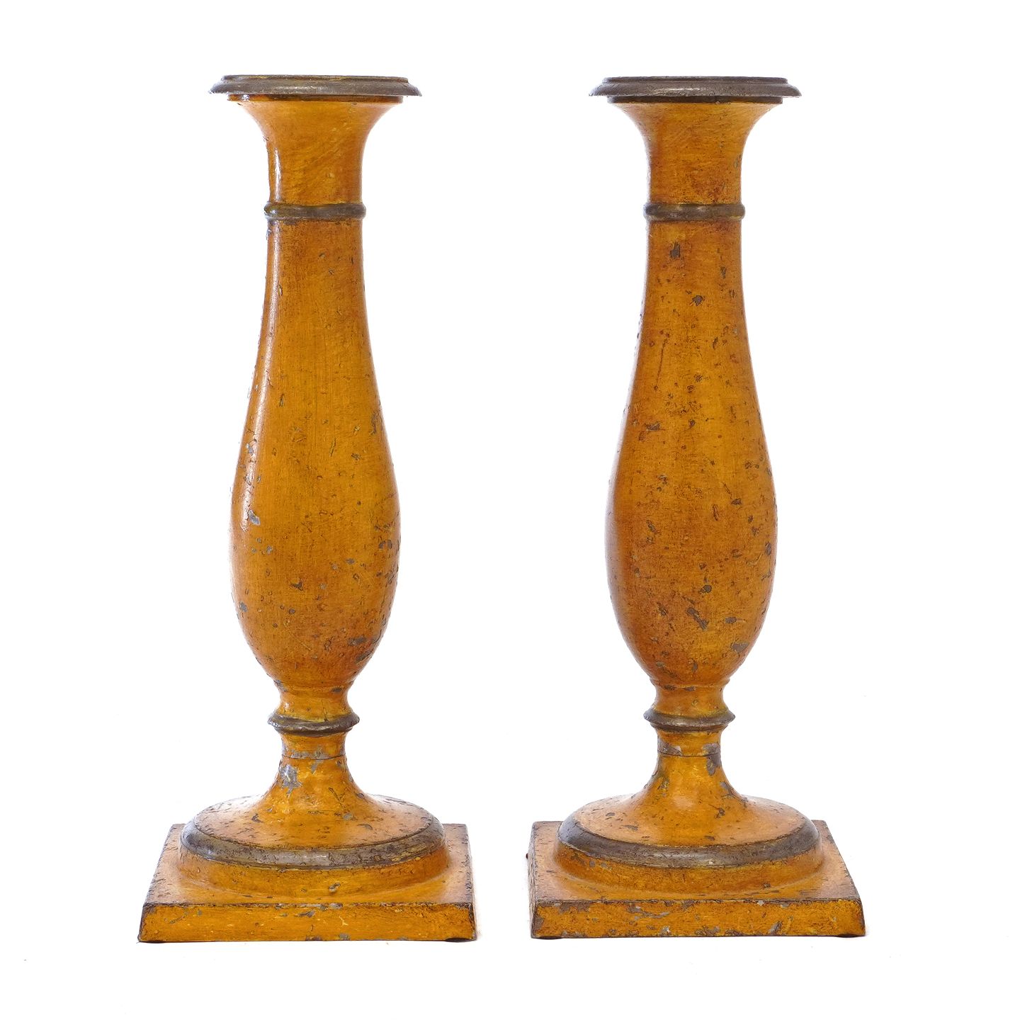 Ein Par gelbe Tulpenleuchter aus Zinn