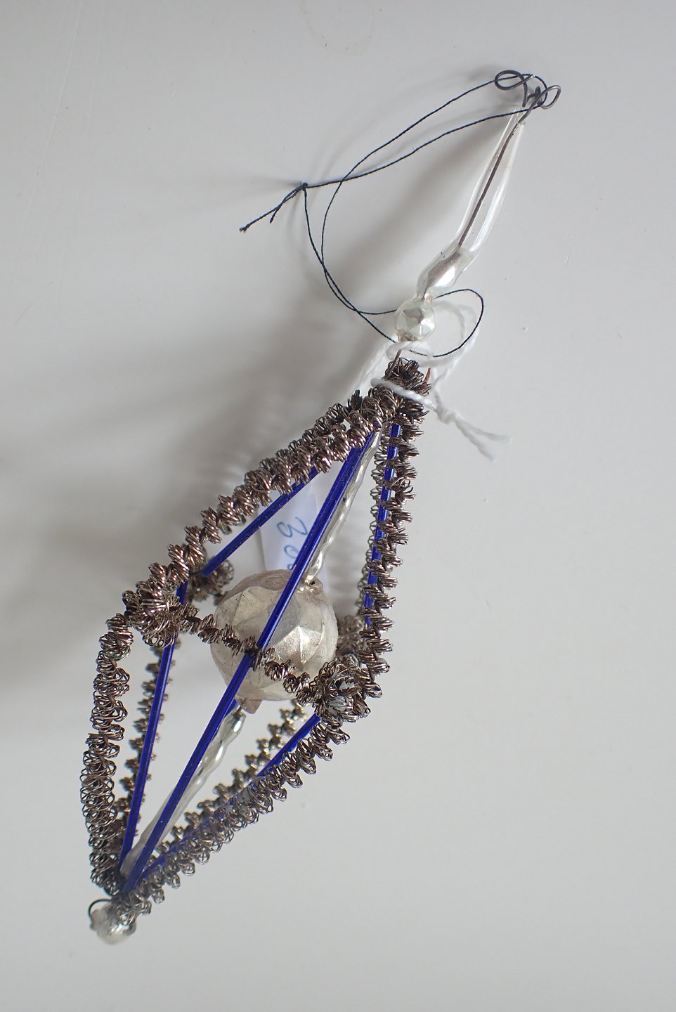 Øverst til venstre: Lygte sammensat af glasperler/-kugle og -stænger. 1930 - 1940. Højde: 8,5 cm. Pris: 250 kr.