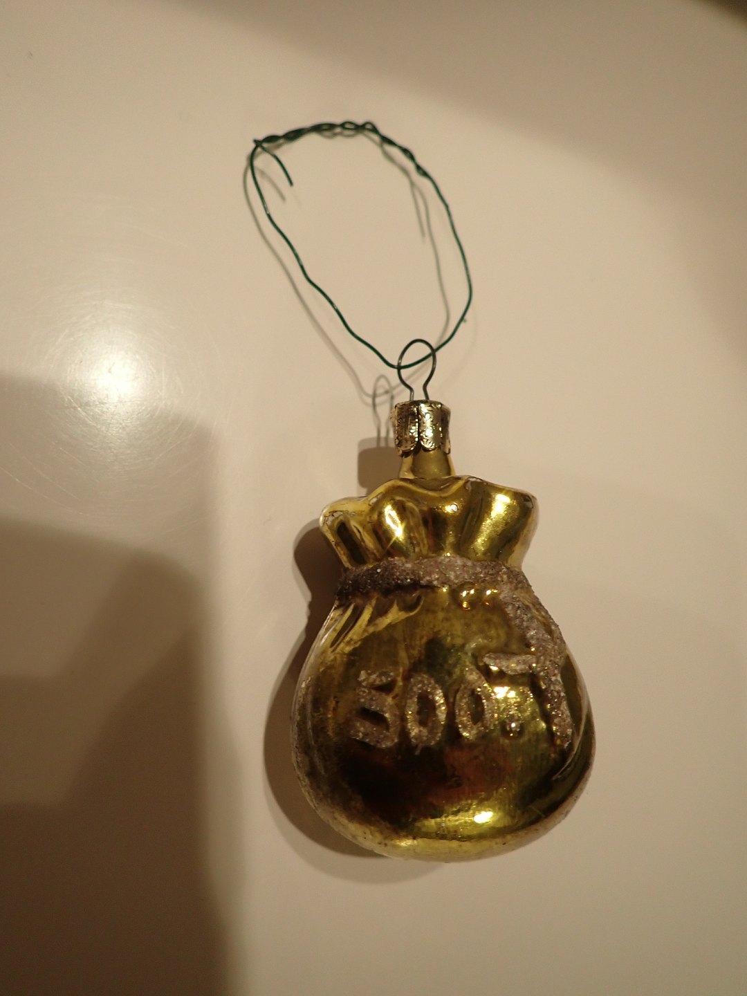 6 glasornamenter, figurer - en russisk agurk, en russisk ræv, et tysk hus, en russisk kat, en russisk snurretop og en tysk pengepose. Alle 1930 - 194 og i pæn stand i forhold til alder. Priser: fra 150 - 225 kr.