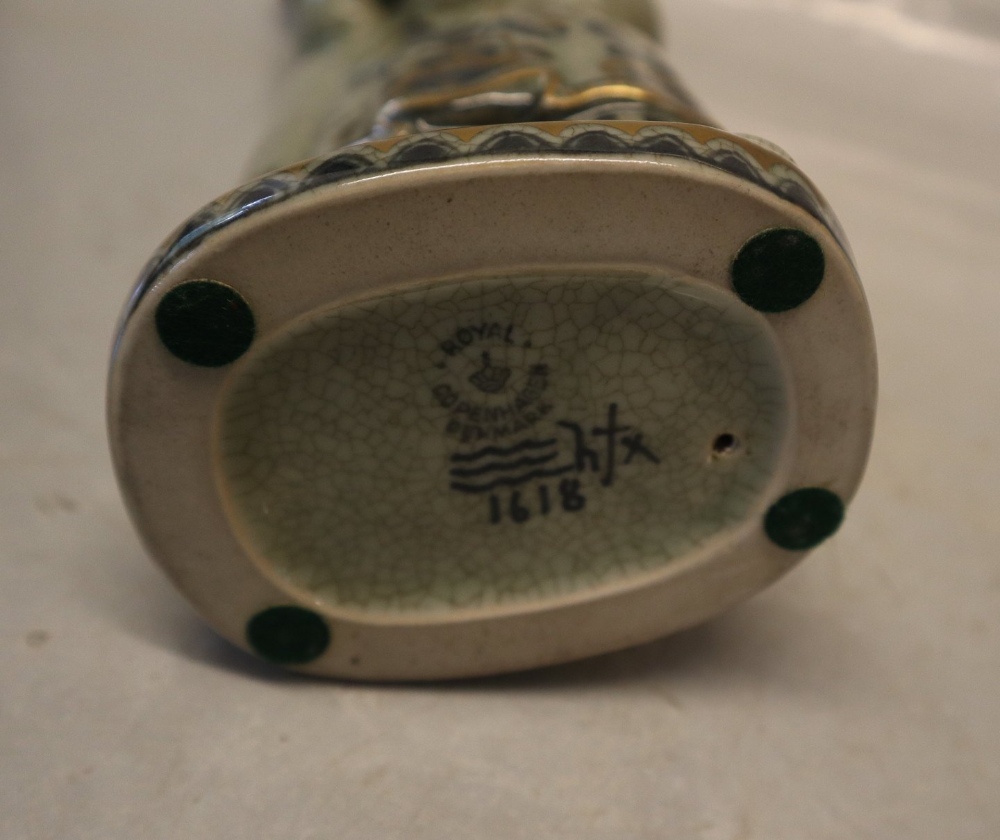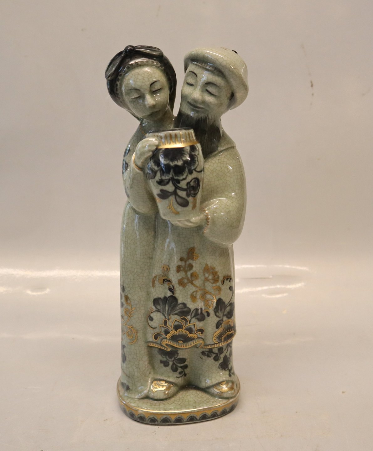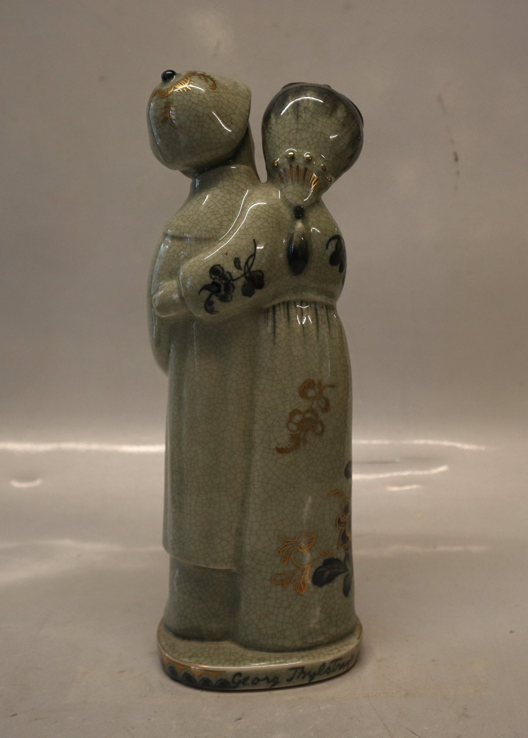 Kgl. Grøn Craquelé figur fra Royal Copenhagen I hel og fin stand1618 Kinesisk par med krukke 25 cm Georg Thylstrup 1 sortering