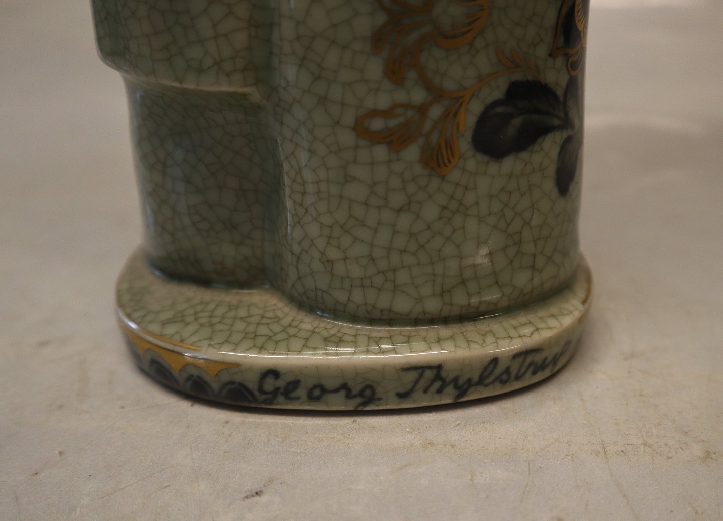 Kongelig Dansk 1618 Kinesisk par med krukke 25 cm Georg Thylstrup Grøn Craquelé