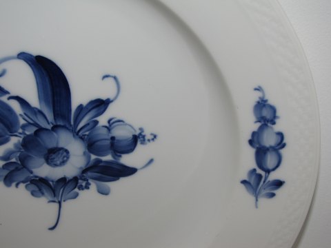 Royal Copenhagen Blå Blomst Flettet, lille rundt fad.Af fabriksmærket kan det udledes, at denne er produceret i mellem 1898 og 1923.