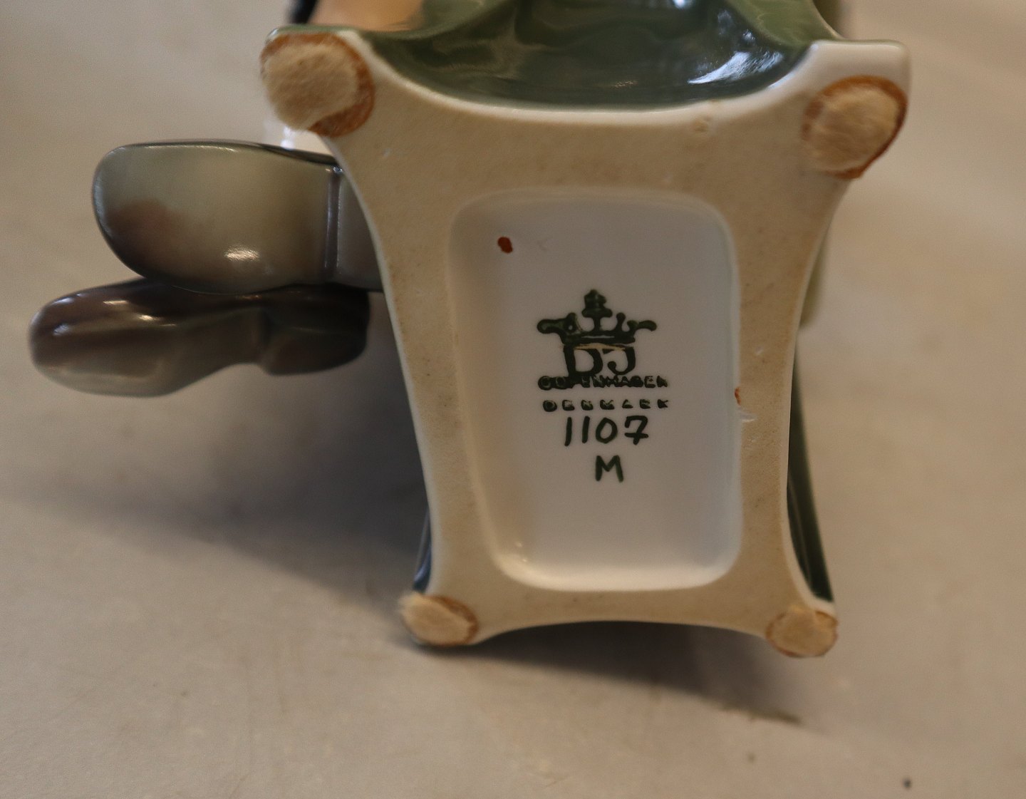1 x 2. sortDahl Jensen 1107 Pige med bog (DJ) 21 cm. Mærket med kongelig krone og DJ Copenhagen i hel og fin stand. Læsende pige