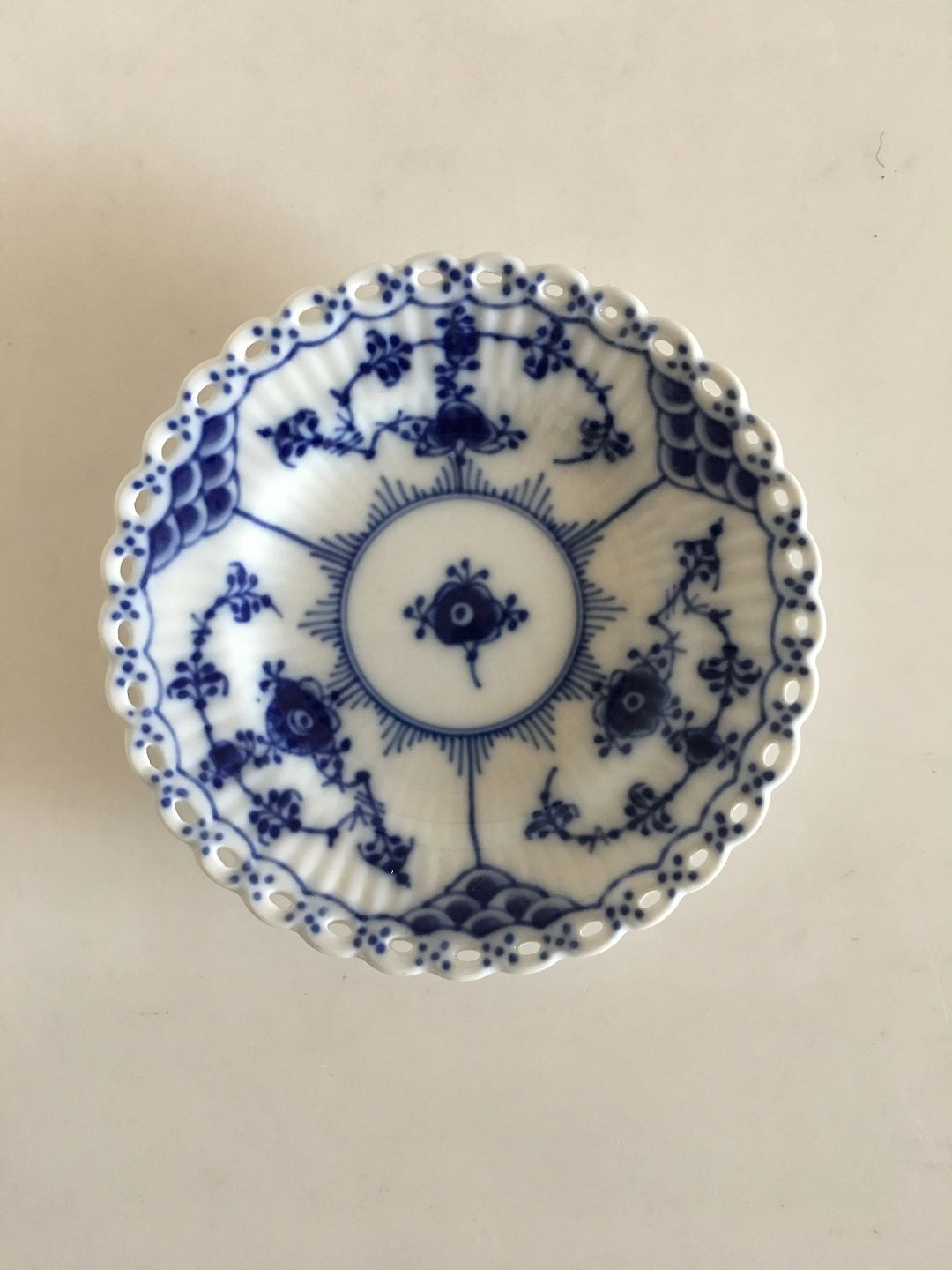 Royal Copenhagen Musselmalet Helblonde Tallerken til æggebæger No 1145. Måler 11cm og er i hel og fin stand.Lager: 1