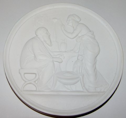 Royal Copenhagen Biscuit Platte Livets Aldre - Årets tider Alderdom og Vinter No 119. Kopi af Christian Christensen fra 1842-43 after Thorvaldsens original fra Rom 1836. Måler 14cmLager: 1