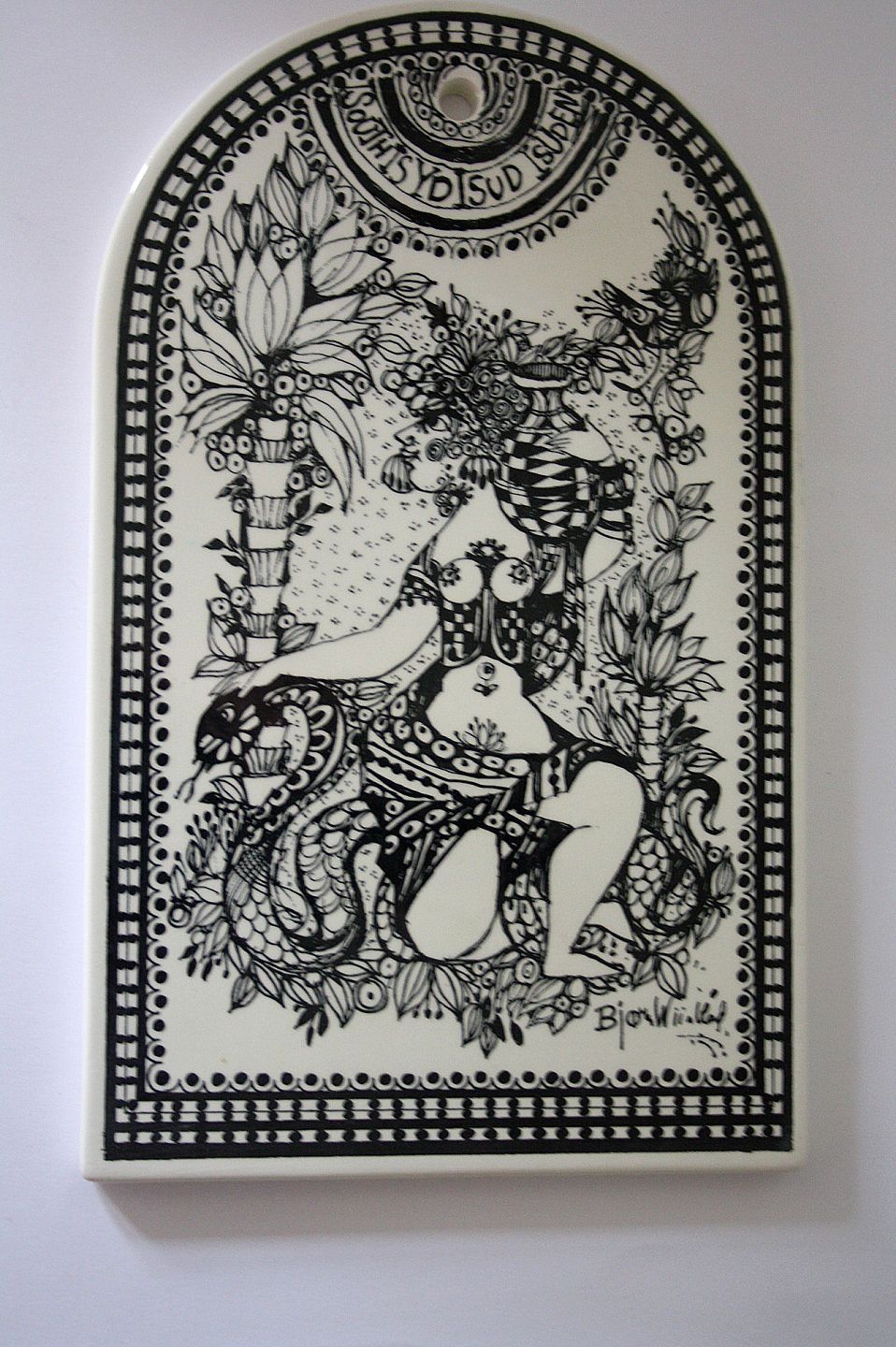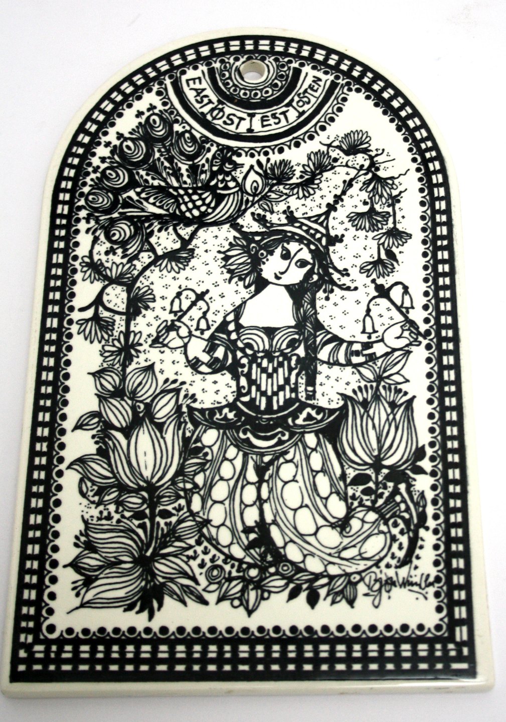 Bjørn Wiinblad, Nymølle, Denmark, spækbræt, platter med motiver fra de 4 verdenshjørner, Syd, Nord, Øst og Vest. Mål 25 x 15 cm. Fin stand. Pris: 300 kr. stk.