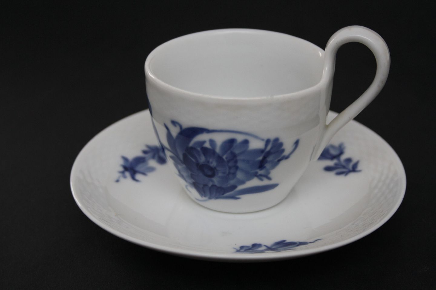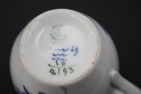 Royal Copenhagen, Blå blomst flettet. Kop med høj hank. Nr. 8193. Højde 7-7,5 cm. Øverste diameter 7 cm. Almindelig aldersrelateret brugsslid med mikro fligafslag på den ene kant. Pris: 200 kr. stk. Lager: 2 Händler