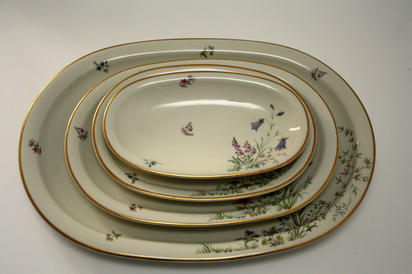 Krautheim, Selb Bavaria, Germany, Danmarks Flora cremet stel med guldkanter motiv Danmarks flora flere forskellige motiver. ARKIV foto.Stegefad, 39,5 x 28 cm. Pris: SOLGT