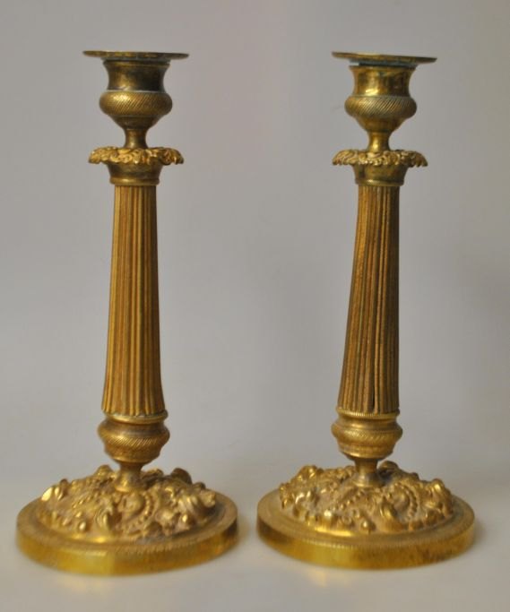 Paar Französisch Kerzenleuchter aus Messing / Bronze, vergoldet, 19. Jahrhundert