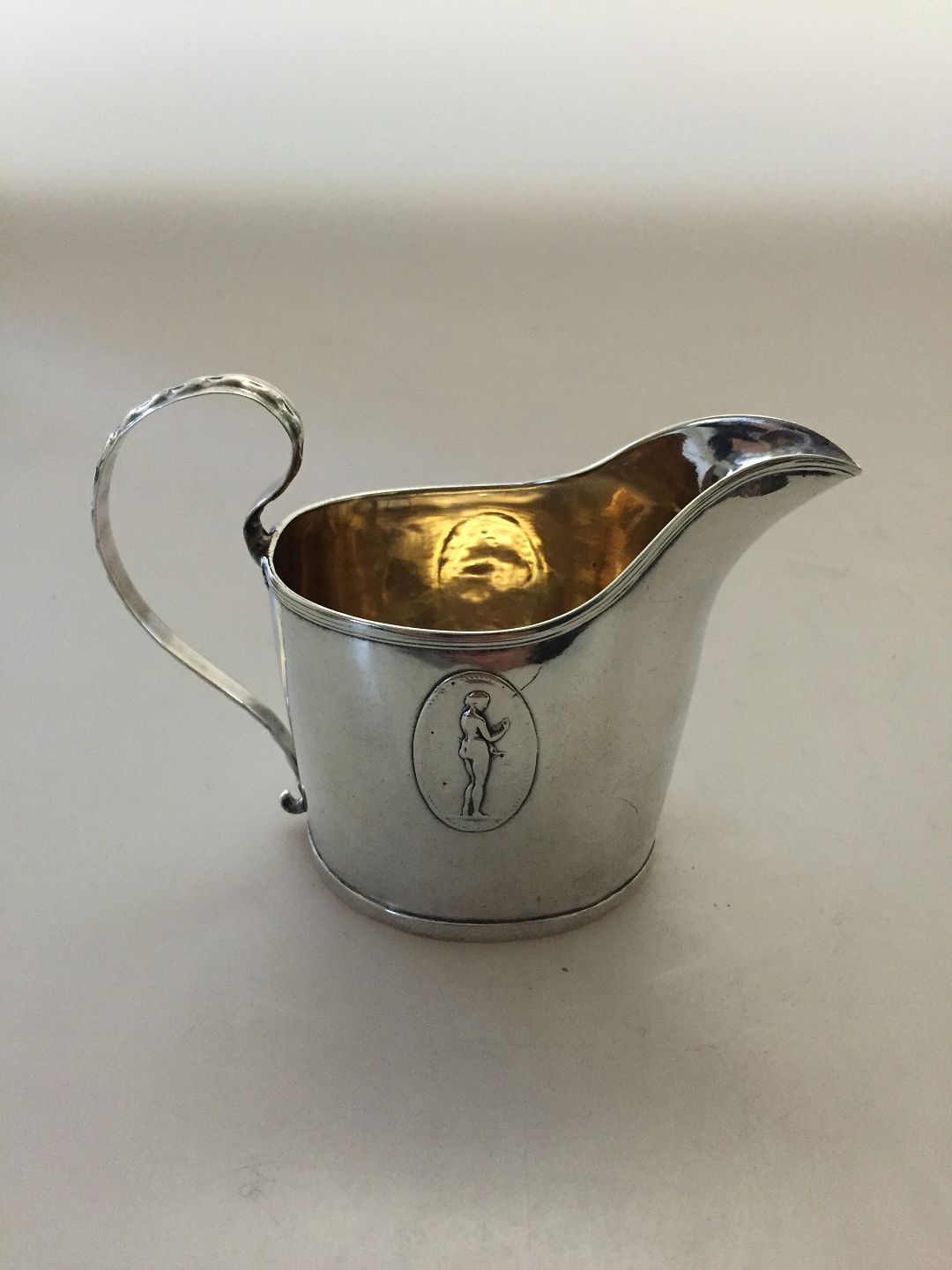 Svensk Sølv flødekande fra 1888 med nøgen mand og pige. Måler 8 cm i højden og 7 cm diameter.Vejer 114 g