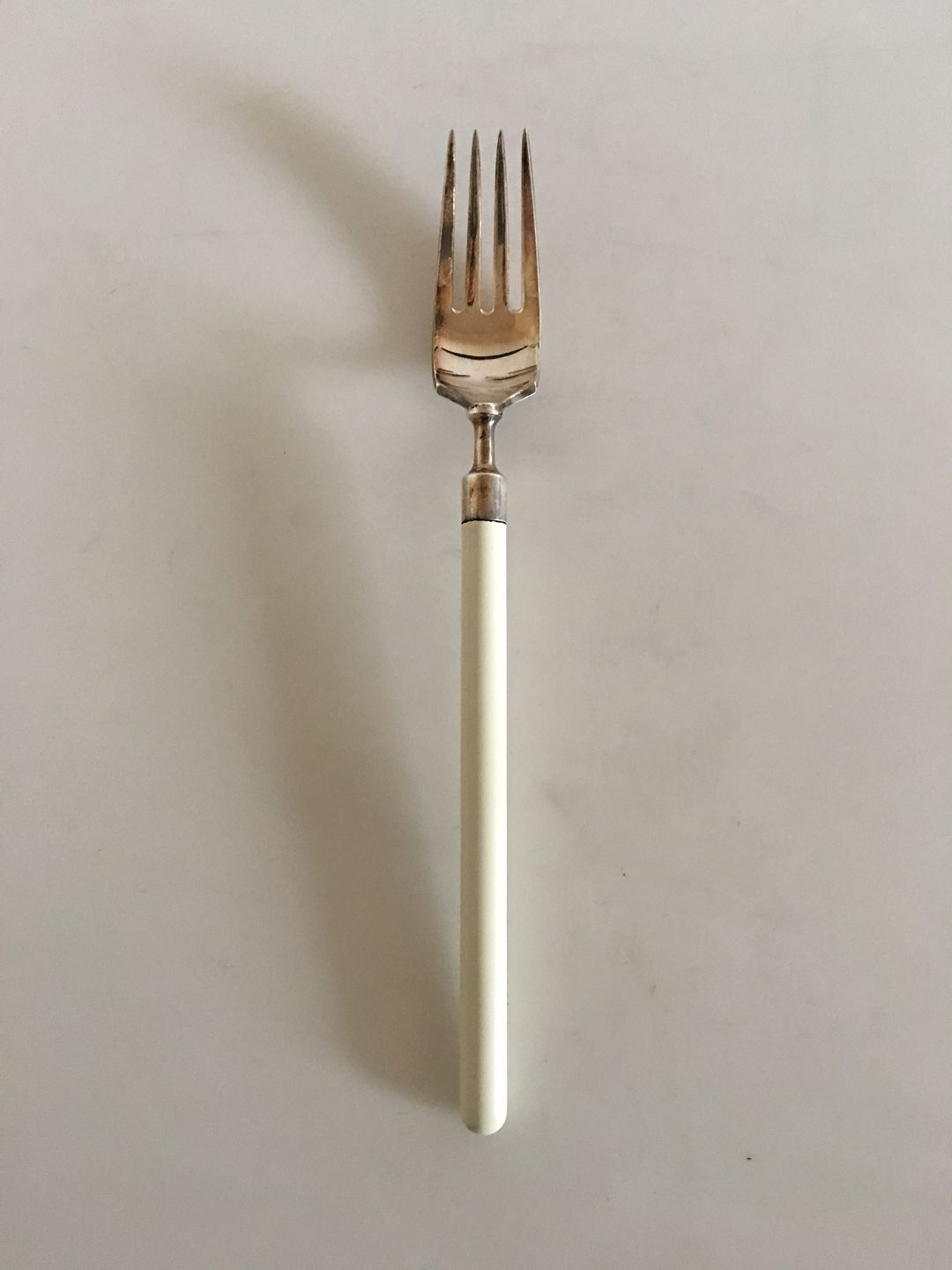 Hans Hansen Amalie Sølv Spise Gaffel med Hvidt Emalje Håndtag