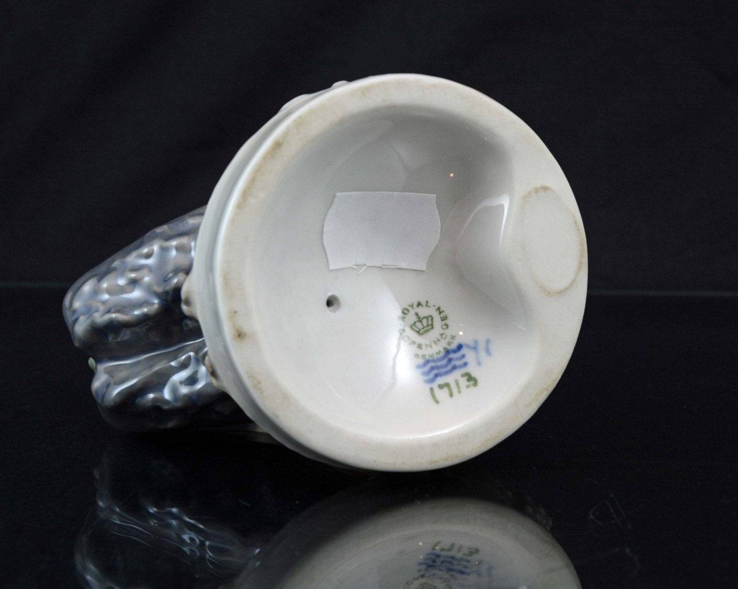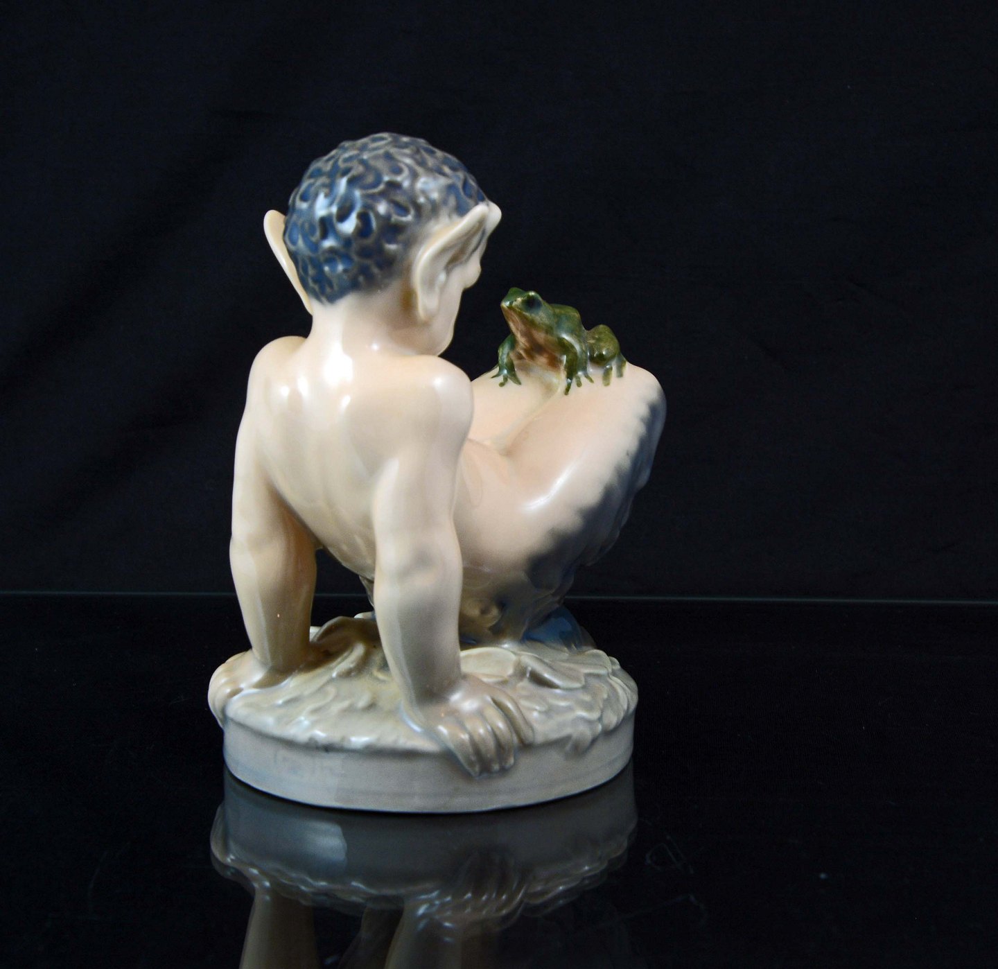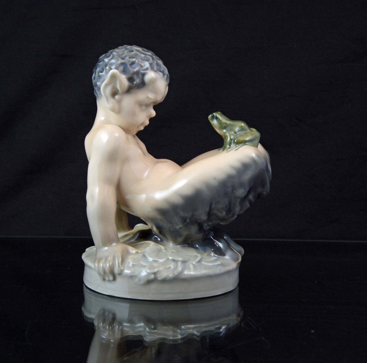 Kgl. porcelænsfigur 'Favn med frø' (nr. 1713) designet af Chr. Thomsen for Royal Copenhagen. Grøn i fod. 1. sortering
