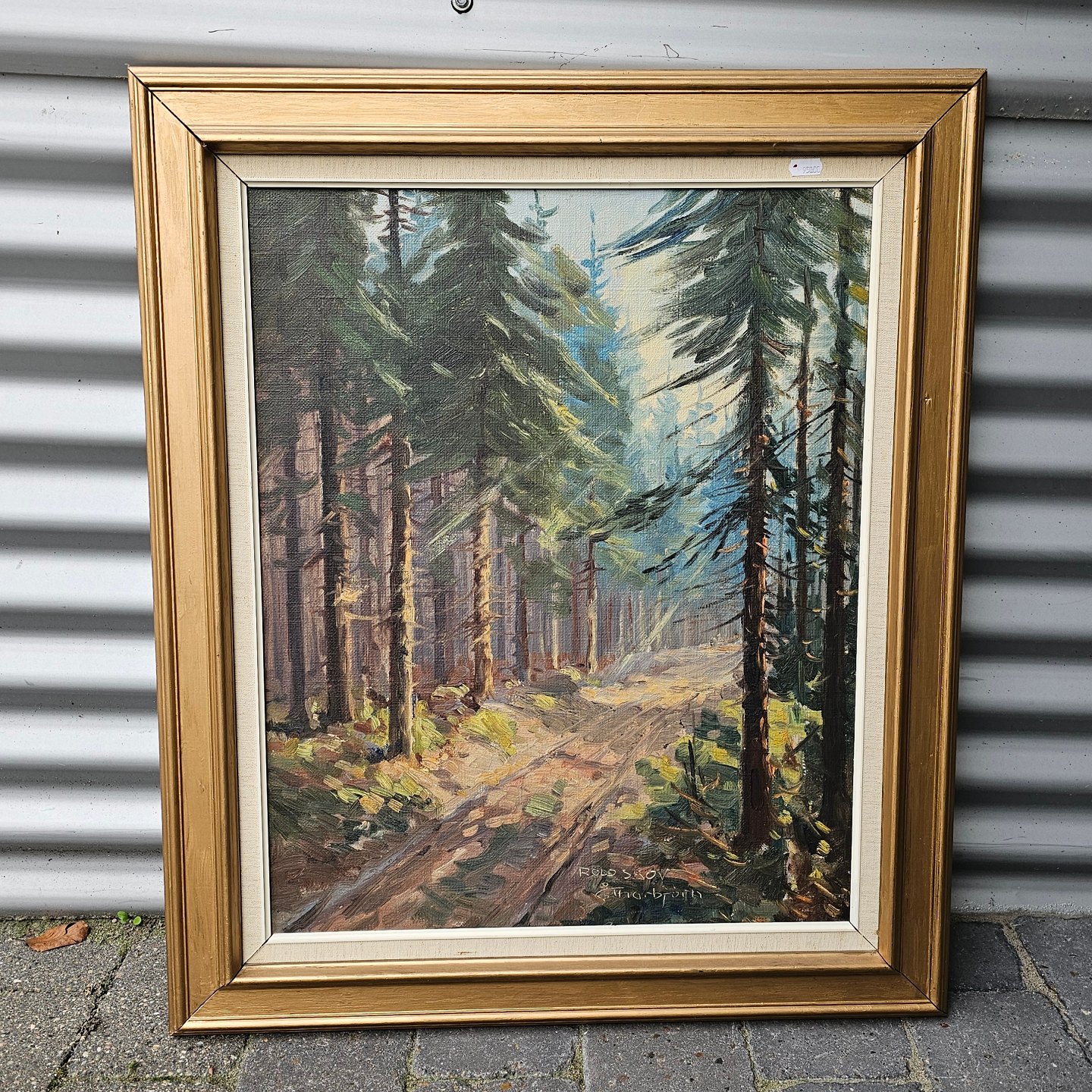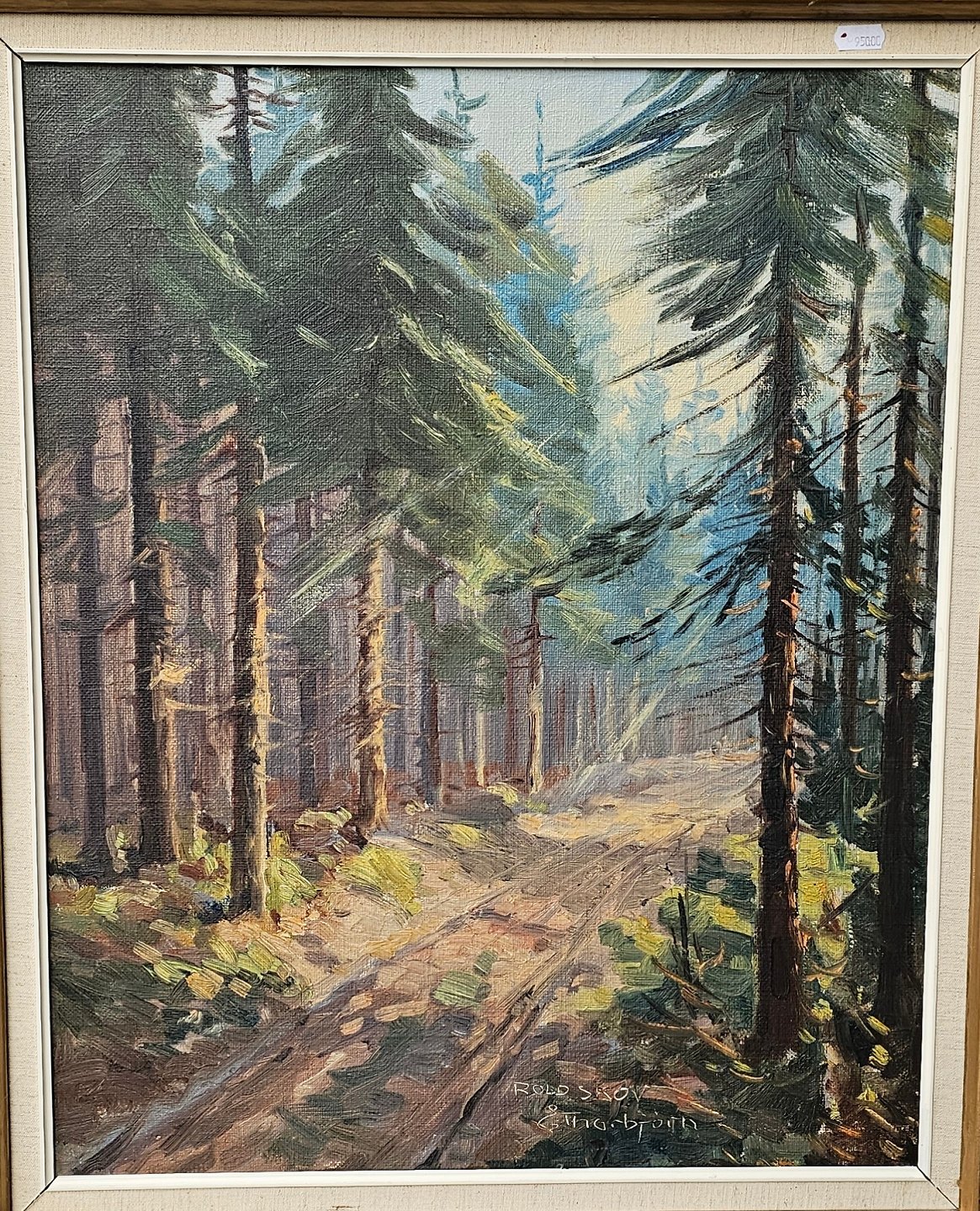 Maleri med parti fra Rold Skov.Signeret af Evelyn Thorbjørn (1911-90).