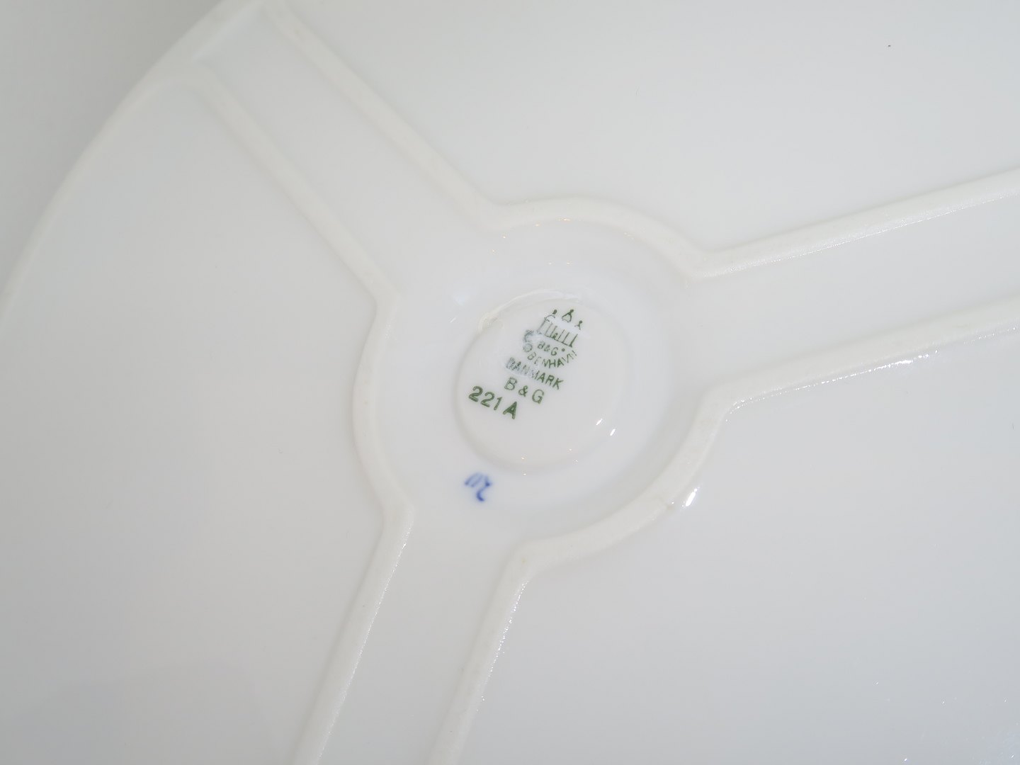 Bing & Grøndahl Empire, tre-delt rundt fad med knob.Fabriksmærket viser, at denne er fra mellem 1962 og 1970.