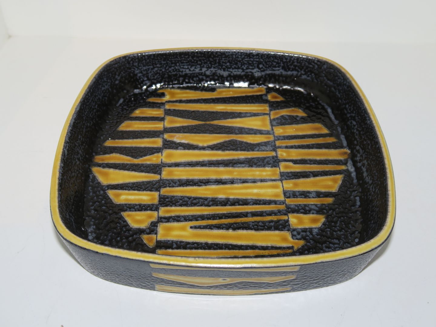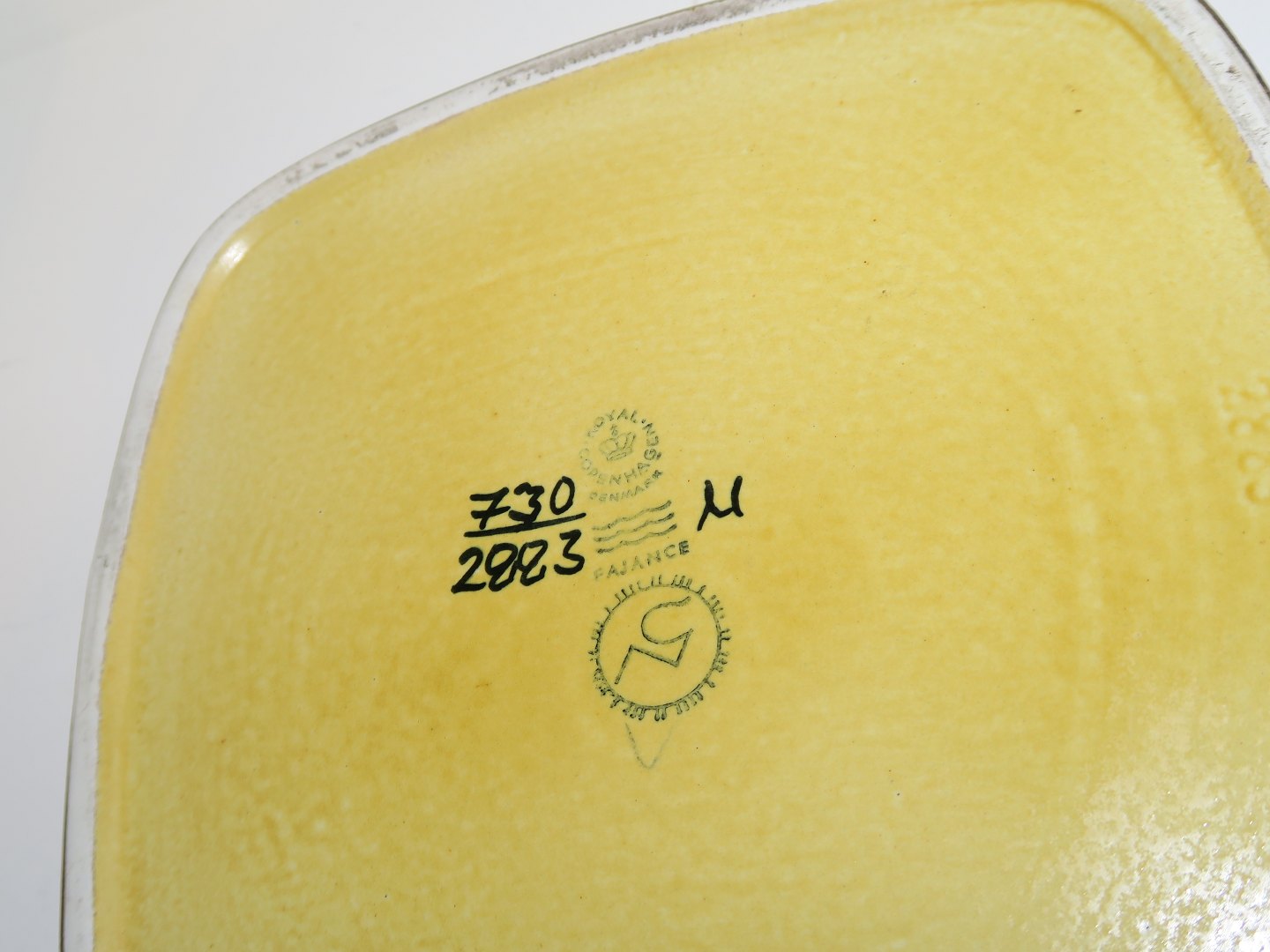 Royal Copenhagen Fajance Baca gul firkantet skål.Designet af Nils Thorsson.