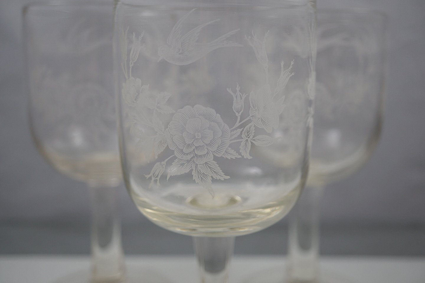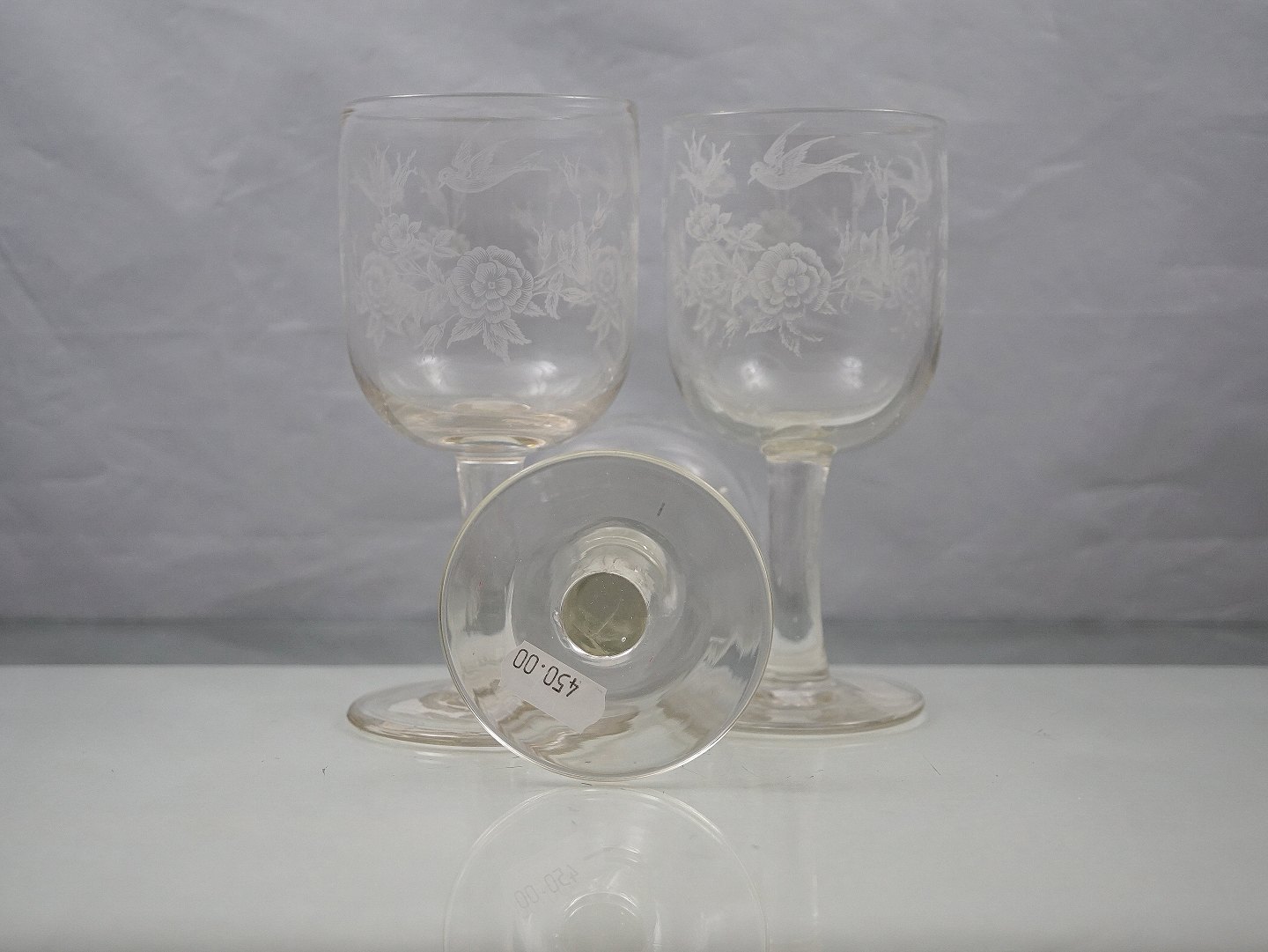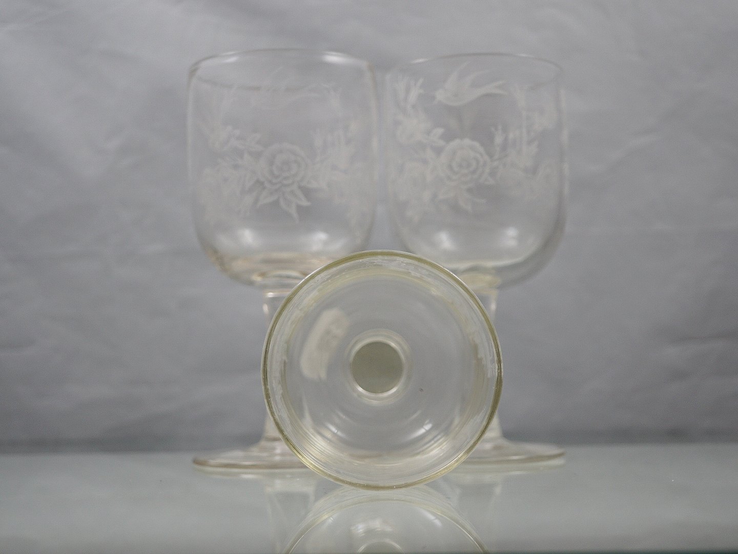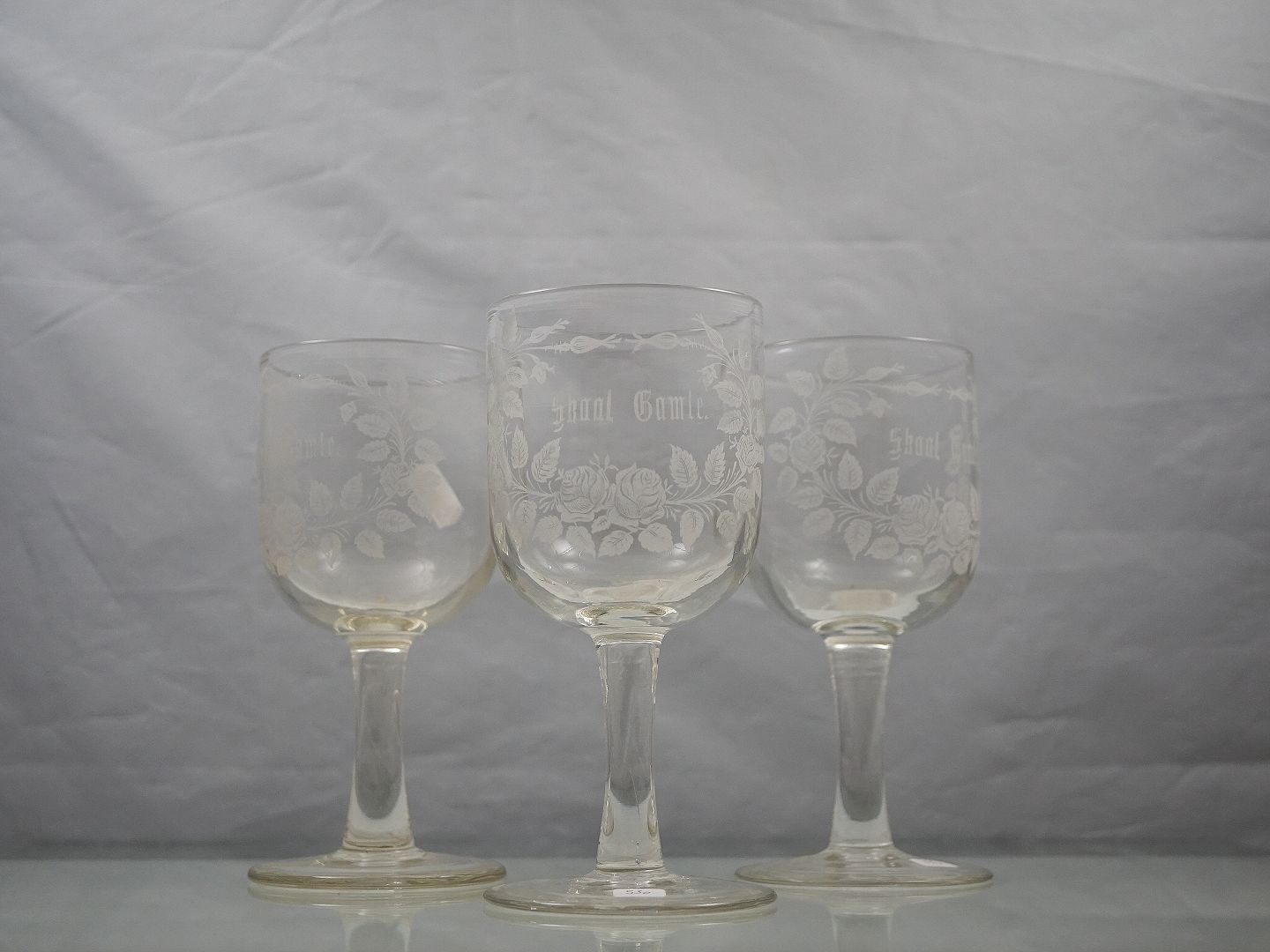 Kastrup Glasværk. Erindringsglas, klart glas, glat rund stilk med mat ætset blomsterranker og tekstMål Højde 16,5 cm. Ø. 8 cm.