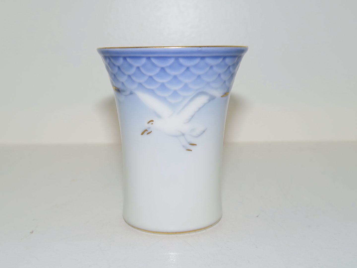 Bing & Grøndahl Måge med guldkant, lille kuvertvase.Dekorationsnummer 207 eller nyere nummer 672.