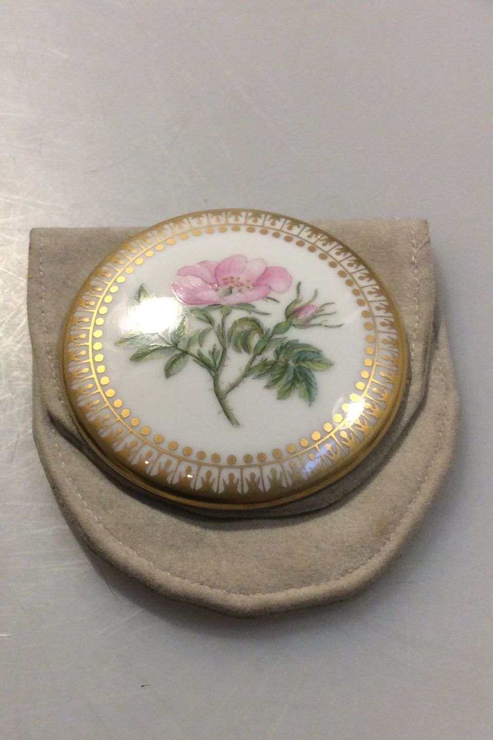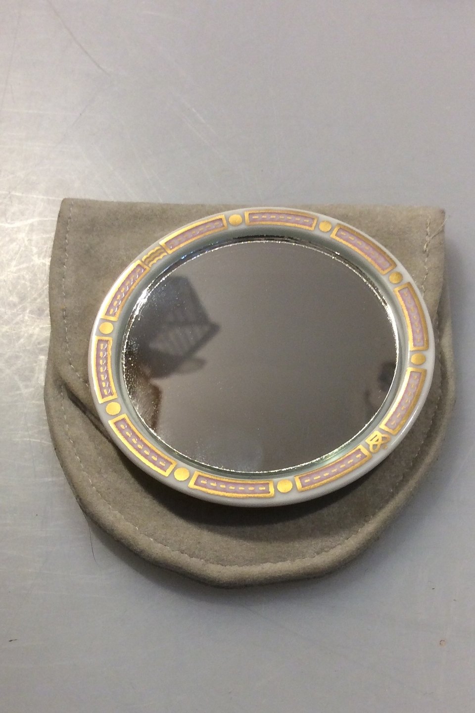 Royal Copenhagen Flora Danica Håndspejl. 6.5 cm Ø. Spejlet er i god hel stand og kommer i lille ruskindsbeholder.Lager: 1