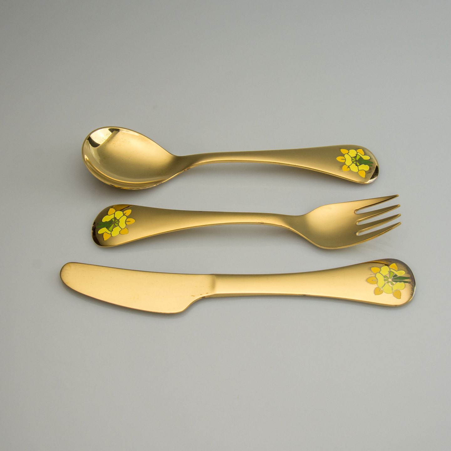 Bestik i forgyldt sølv fra år 1991 med blomstermotivet KællingetandDesign af Annelise Bjørner