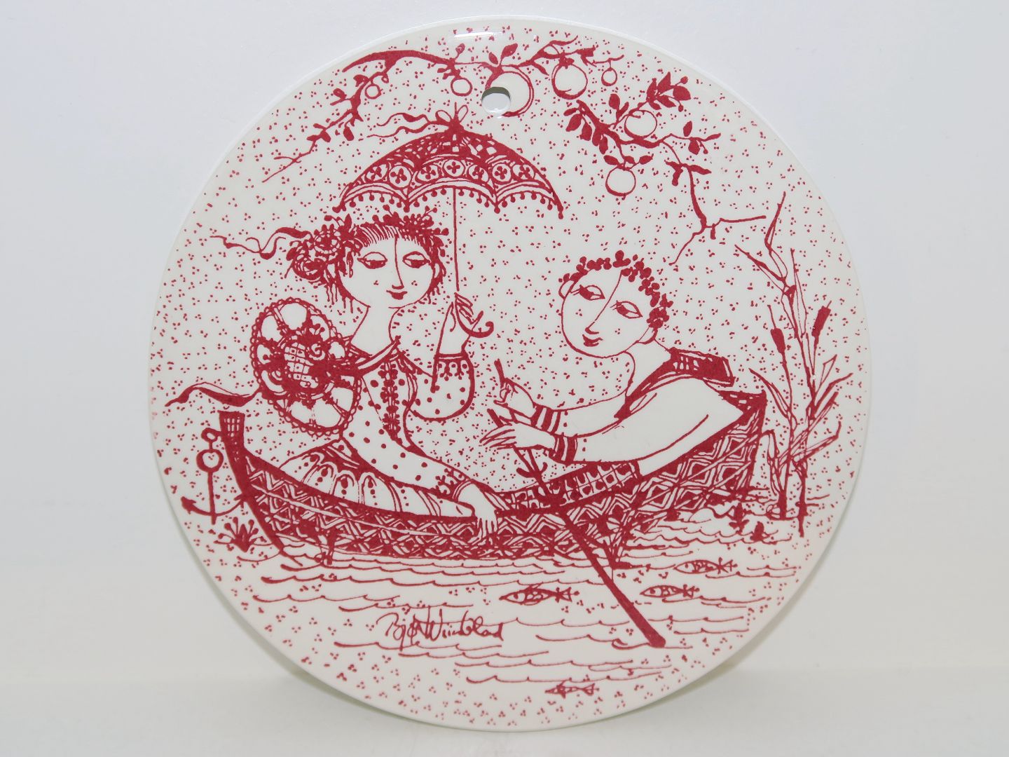 Månedsplatte / smørbrik med rød dekoration, Juli.