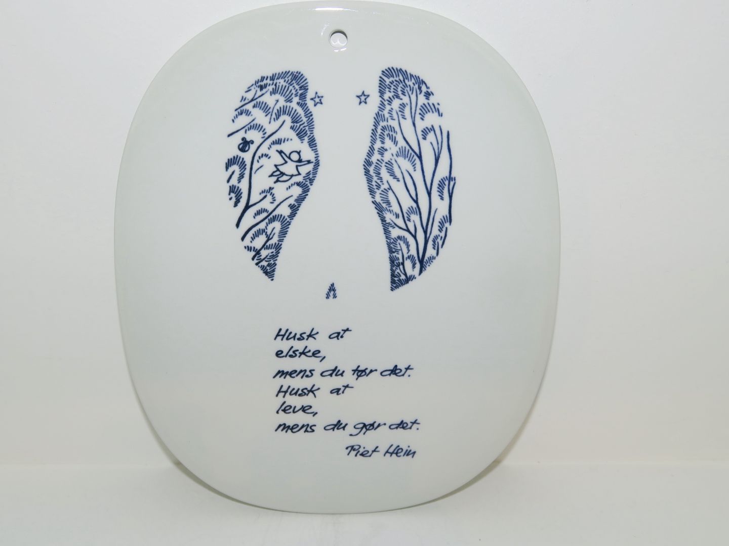 Royal Copenhagen Piet Hein platte med gruk.Husk at elske, mens du tør det. Husk at leve, mens du gør det.
