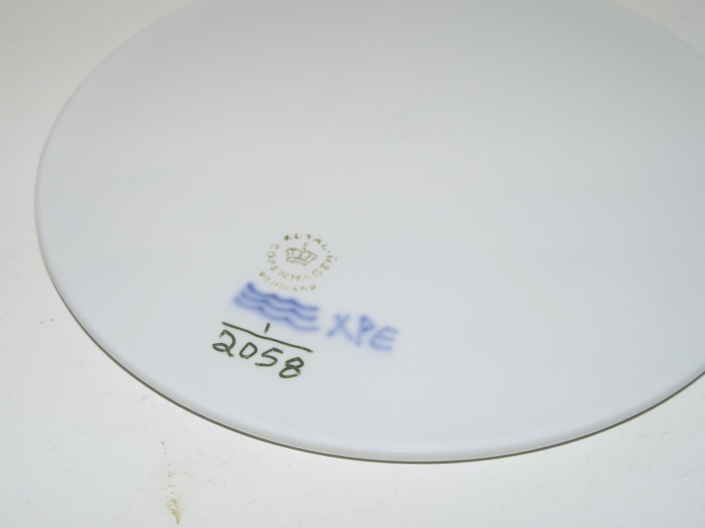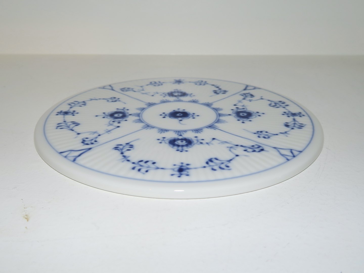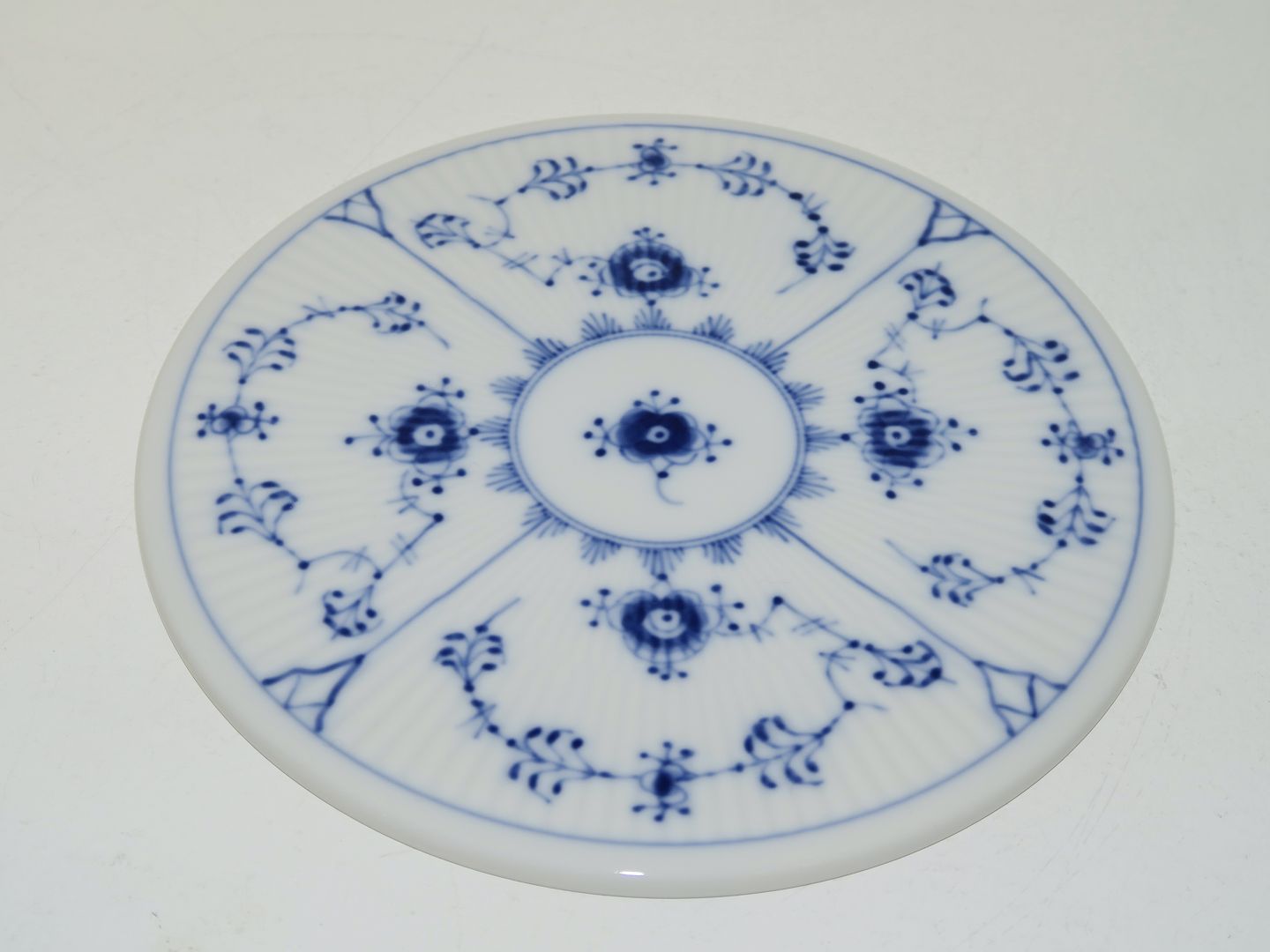 Royal Copenhagen Musselmalet Riflet, sjældent rundt smørbrædt / sættefad. Det er helt fladt og vipper ikke.Dekorationsnummer 1/2058.