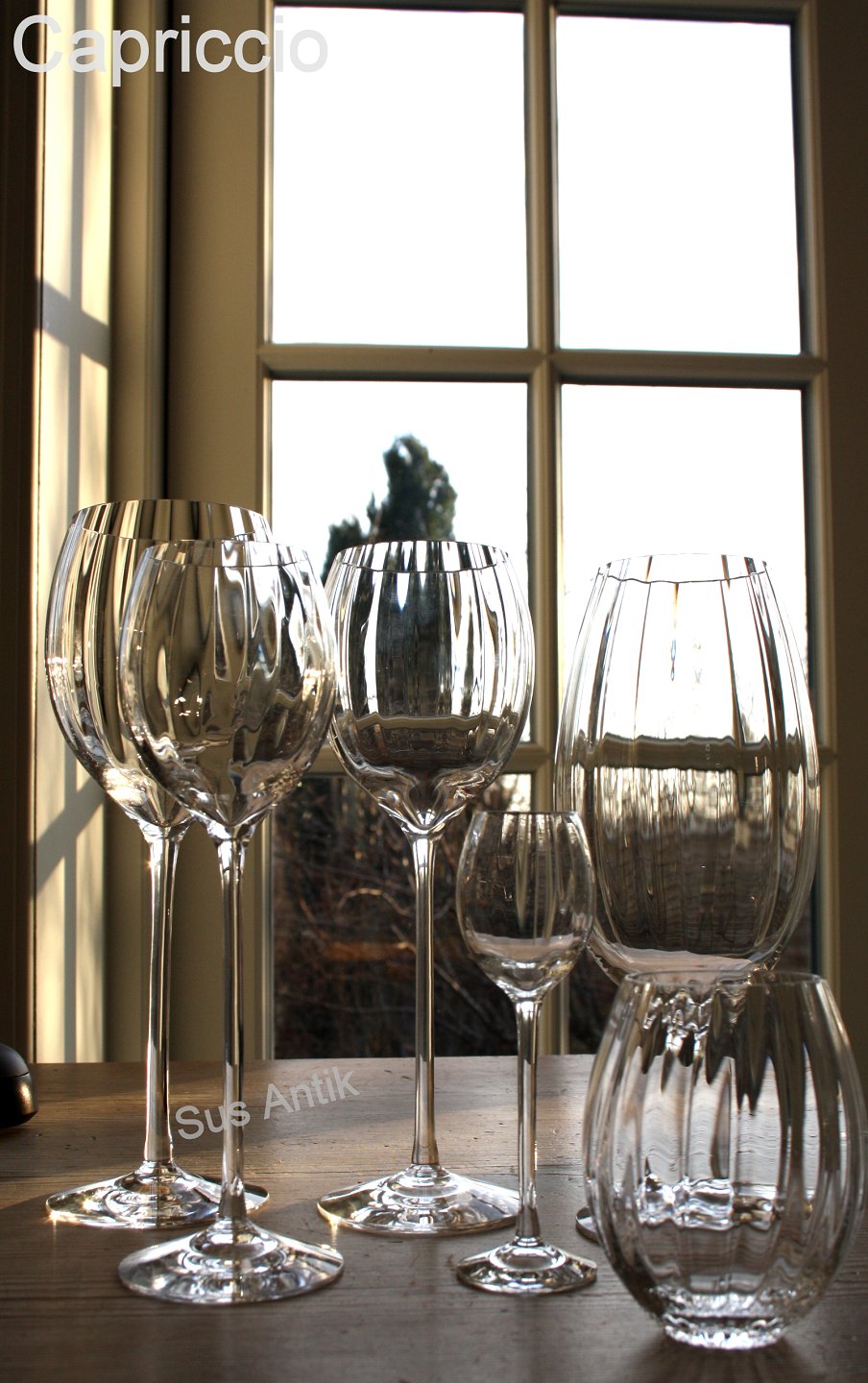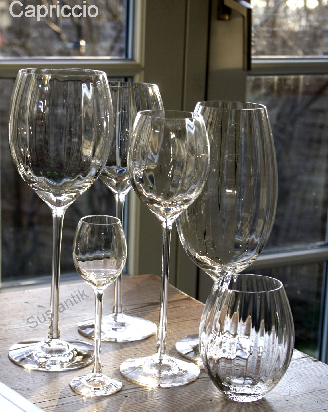 Holmegaard, Capriccio designet af Ole Kortzau i 1990.Rødvin. Højde 25 cm. Øverste diameter ca. 6,5-6,8 cm. Pris: 300 kr. stk. Lager: 10