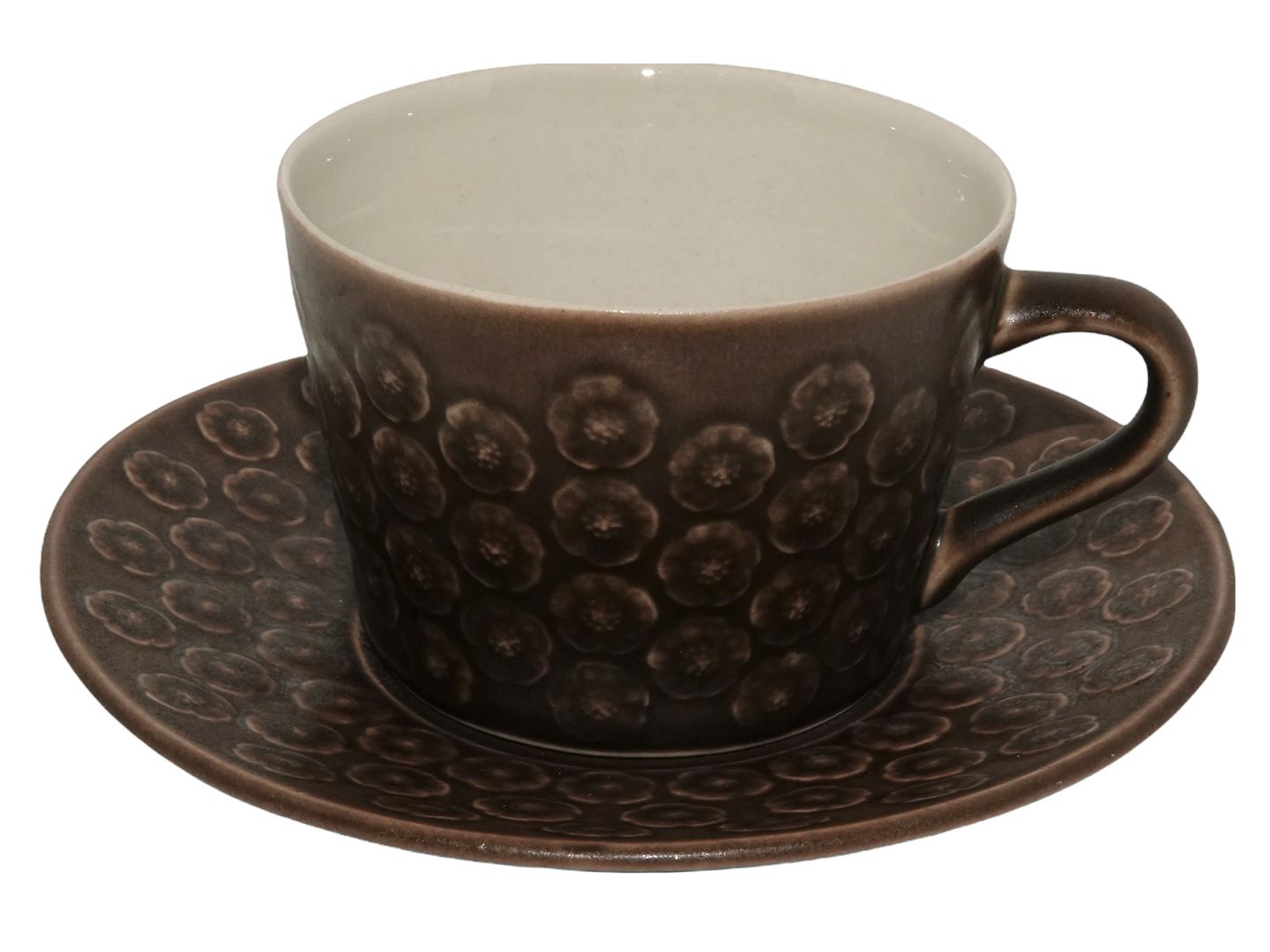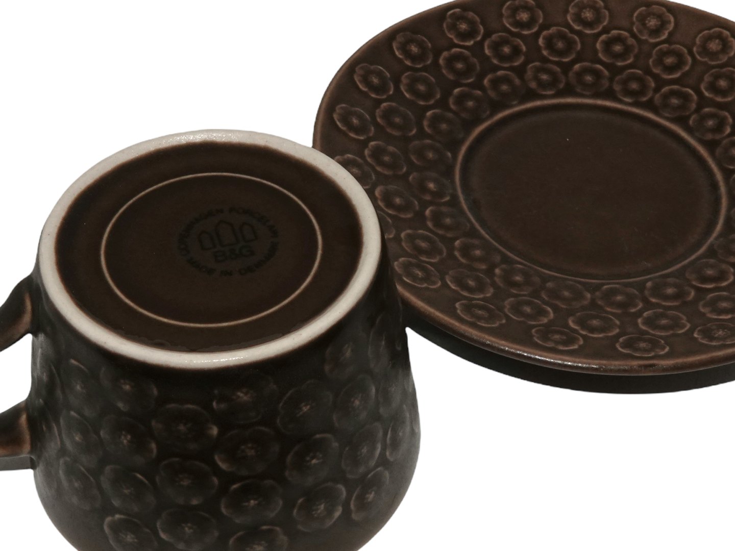 Kronjyden/Bing & Grøndahl Umbra stentøj, kop med underkop.Designet af Jens Harald Quistgaard.