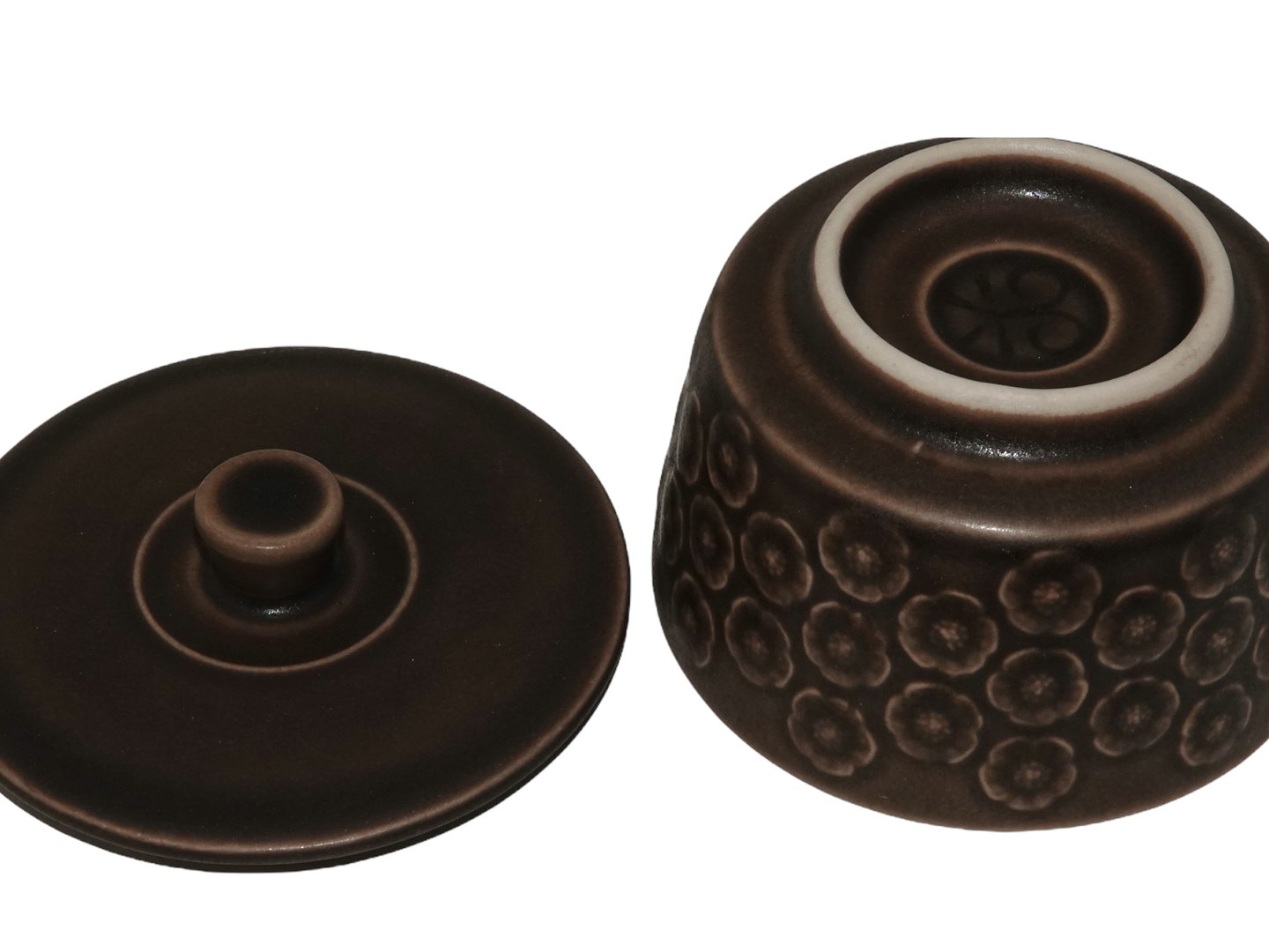 Kronjyden/Bing & Grøndahl Umbra stentøj, sukkerskål med låg.Designet af Jens Harald Quistgaard.