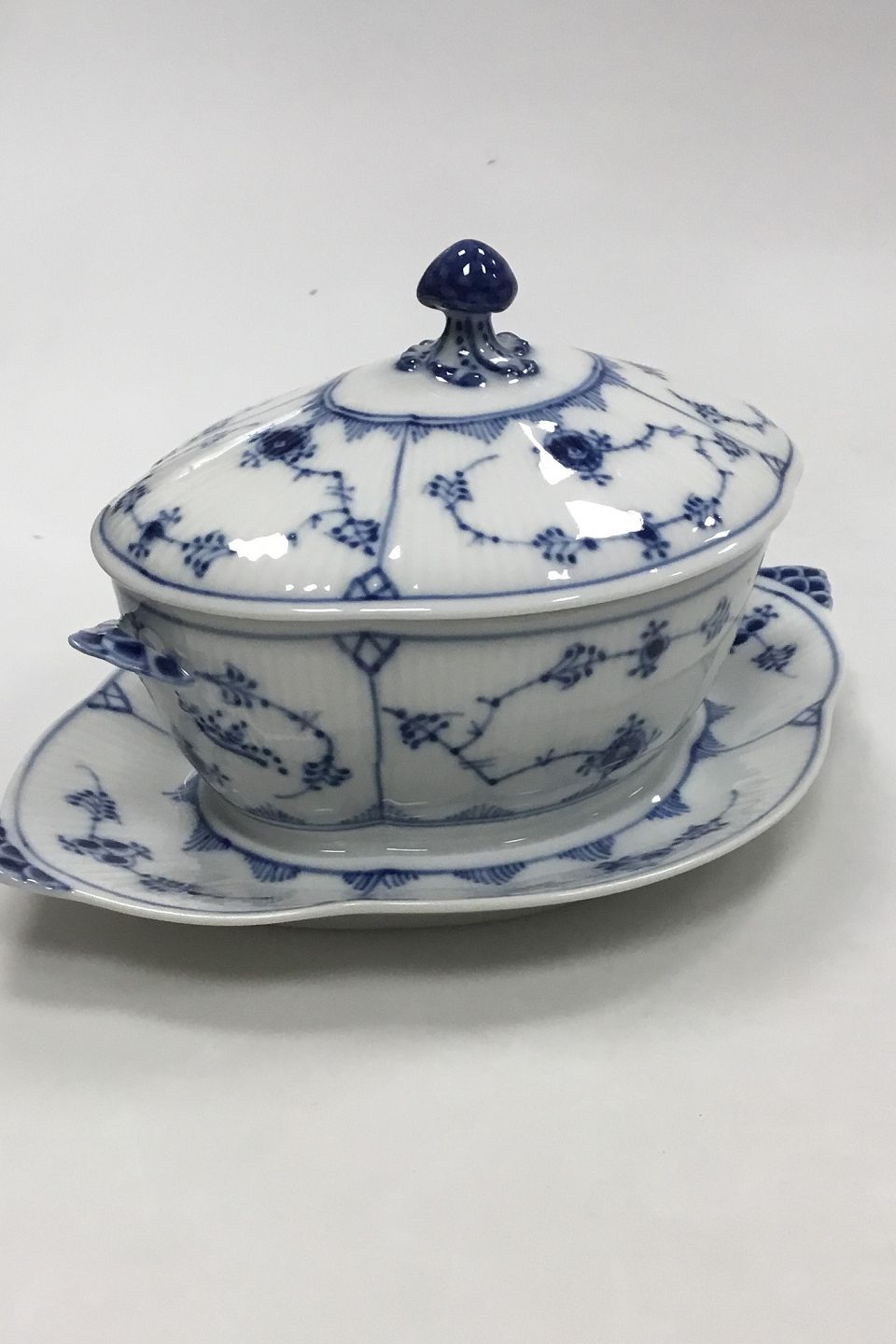 Royal Copenhagen Musselmalet Riflet Sauceskål med låg No. 207