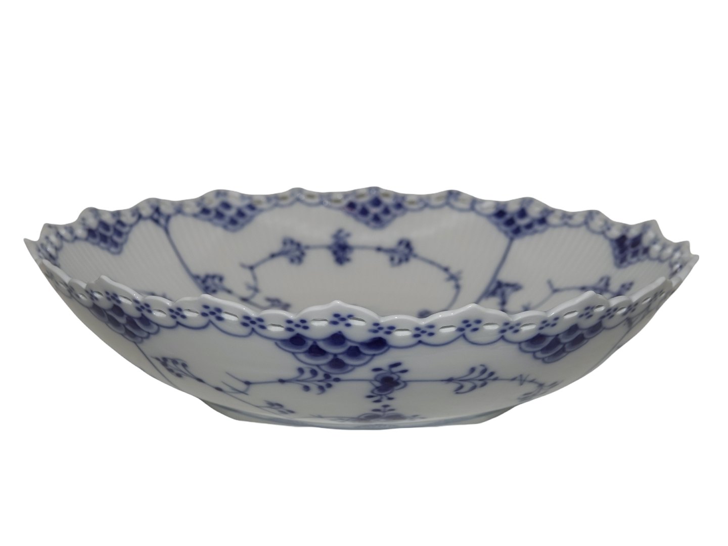 Royal Copenhagen Musselmalet Helblonde, stor rund skål.Fabriksmærket viser, at denne er produceret i mellem 1975 og 1979-