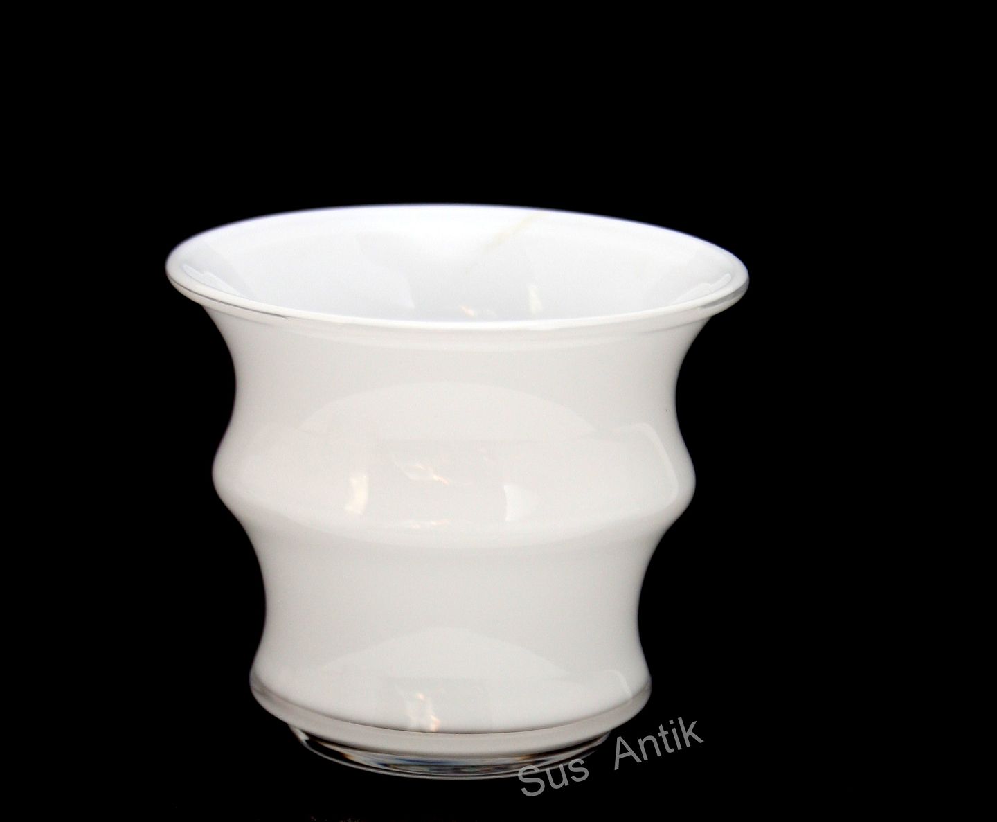 Holmegaard, Karen Blixen, hvid opaline fyrfadsstage kan også bruges som mini urtepotteskjuler. Designet af Anja Kjær i 2000. Formen er inspireret af afrikanske kvinders hals og armringe. Sigeret Anja Kjær Holmegaard. Højde ca. 7 cm. Diameter ca. 8,5 cm. Pris: 200 kr. stk. Lager: 1 Händler