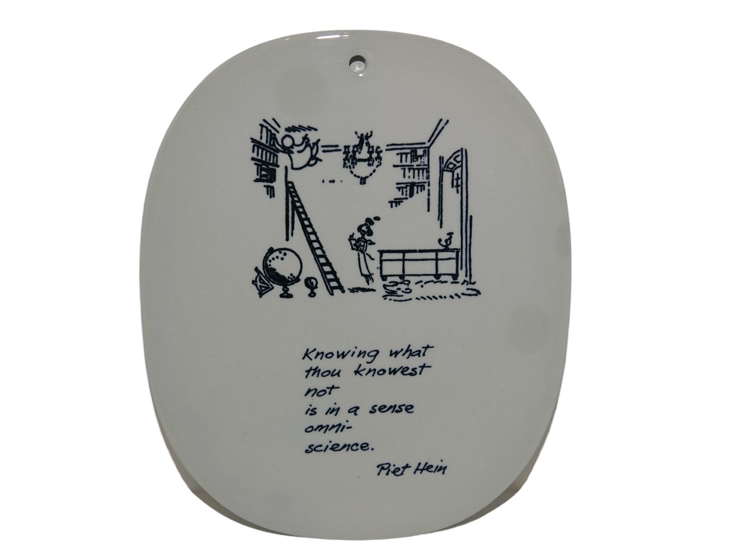 Royal Copenhagen Piet Hein platte med gruk på engelsk.Knowing what thou knows not is in a sense omni-science.