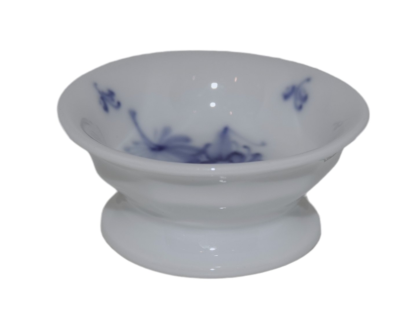 Royal Copenhagen Blå Blomst Kantet, rundt saltkar.Dekorationsnummer 10/8585.