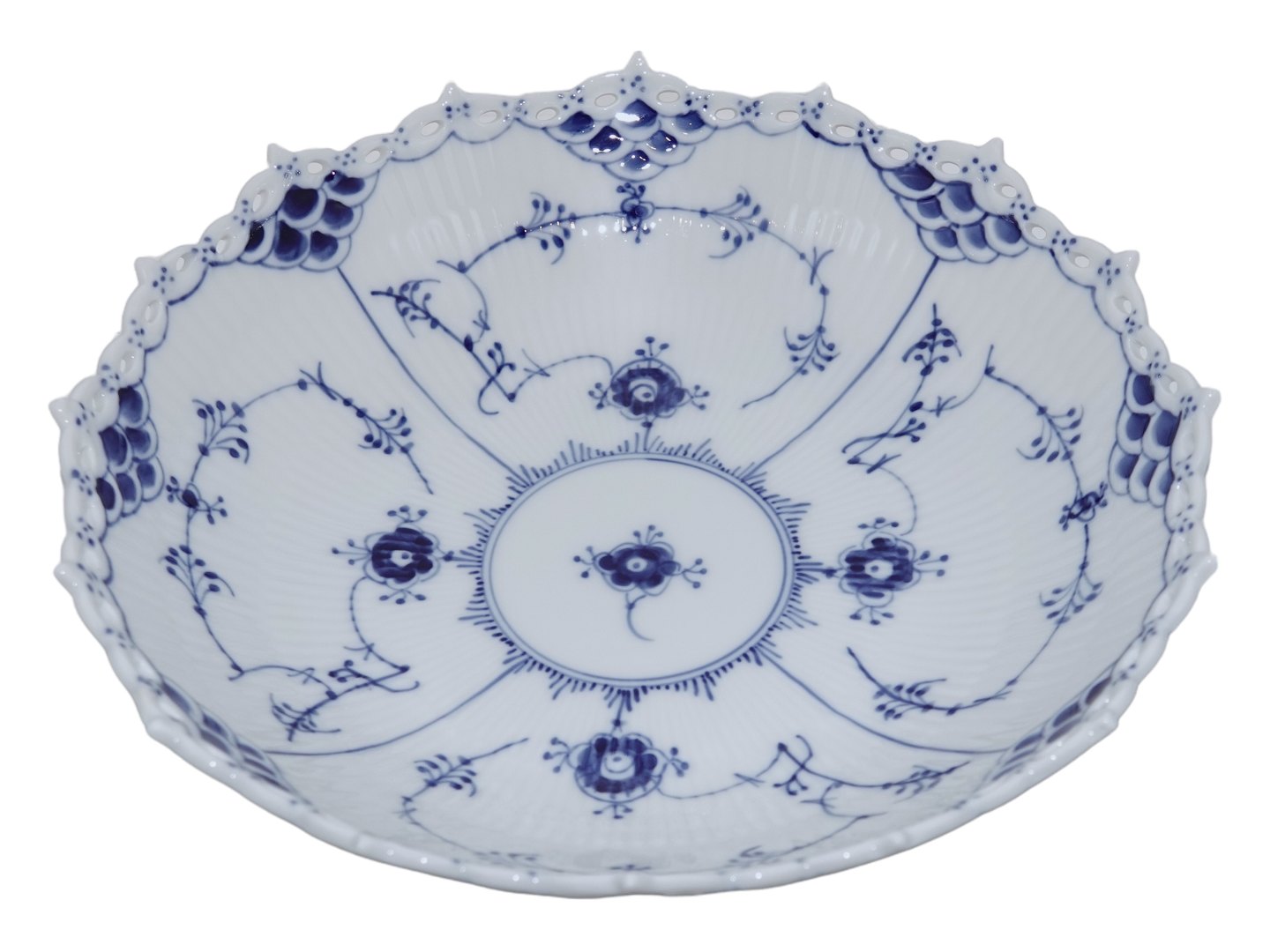 Royal Copenhagen Musselmalet Helblonde, rund skål.Fabriksmærket viser, at denne er produceret i mellem 1969 og 1974.