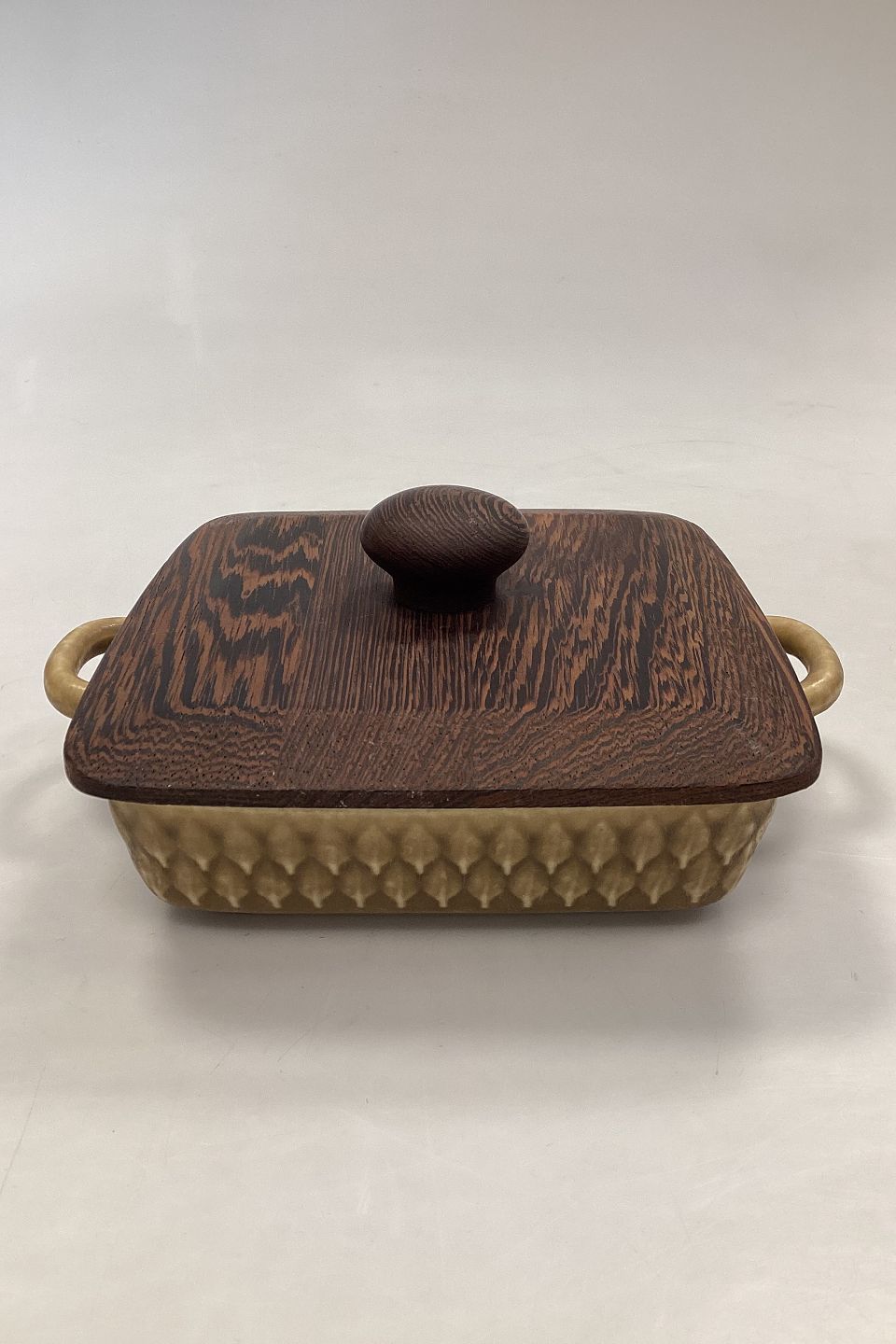 Bing og Grøndahl / Kronjyden Relief Skål med Trælåg. Design: Jens Quistgaard. Måler 20,5 cm med hanke x 17,5 cm. Højde: 5 cm. Låg i wengé træ.Lager: 1