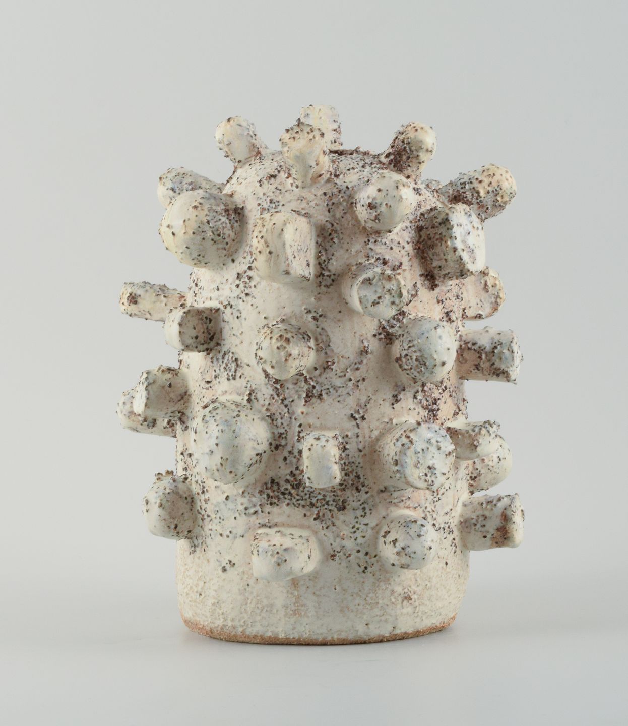 Christina Muff, dansk samtidskeramiker (f. 1971).Large unique stoneware sculpture in offwhite glaze with ironcovered specks.