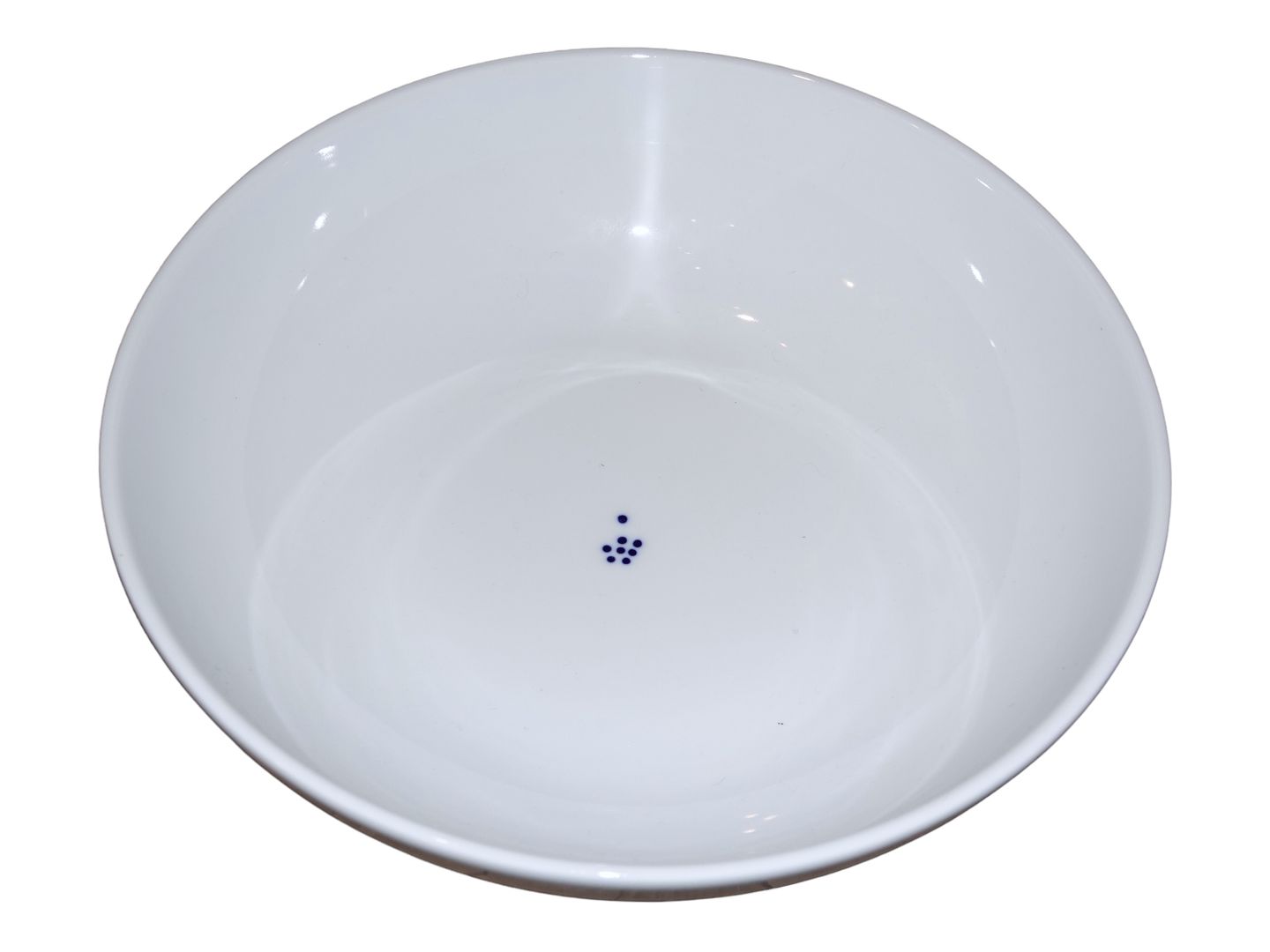 Royal Copenhagen, stor skål med blå prikker.Designet af Ursula Munch-Petersen.