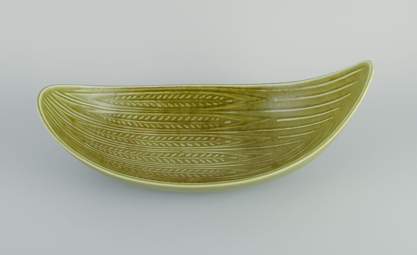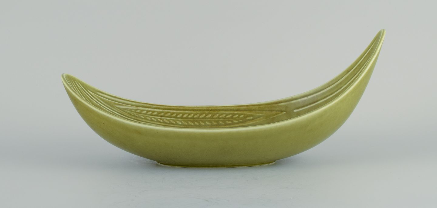 Gunnar Nylund (1904–1997) for Rörstrand. Rialto skål i keramik, aflang organisk form med lysegrøn glasur.1960'erne.